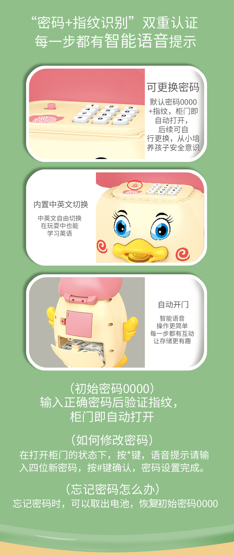 | Color | Reconocimiento de rostros alcancía-rosa púrpura,Hucha de reconocimiento facial-Azul cielo,Taobao pato hucha-rosa,Taobao pato alcancía-Azul,Mano contraseña caja alcancía-rosa,Mano contraseña caja hucha-Azul,Mini coche alcancía-rosa,Mini coche hucha-Verde,Mini coche hucha-Azul,SWAT coche de juguete alcancía-Blanco,Policía especial coche de juguete alcancía-Negro,Hucha ratón-rosa,Hucha del tesoro del ratón-Azul |