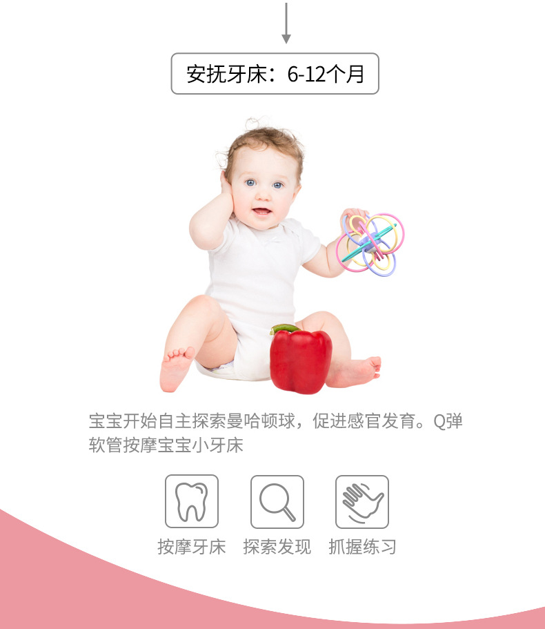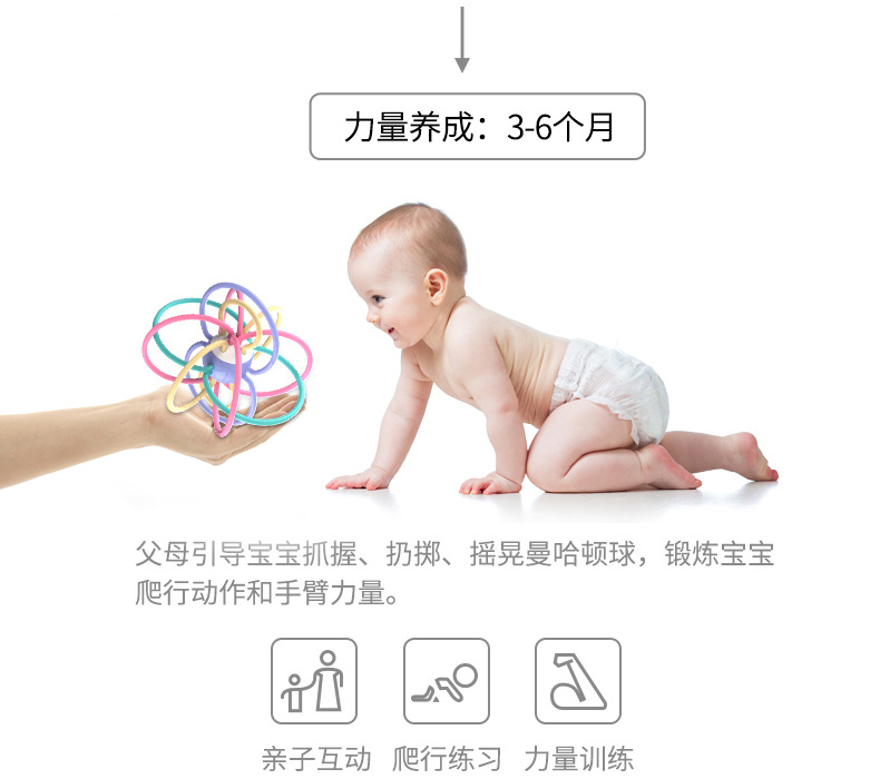 | Entrenamiento de la capacidad | Visión,Desarrollo intelectual,Crawling,Manos a la mente,Pinzamiento,Coordinación mano-ojo,Comunicación padre-hijo,Cultivo de interés |