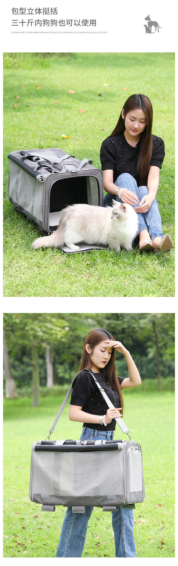 Bolsa para gatos, bolsa para mascotas con capó para perros grandes, caja especial para carrito para mascotas montada en el coche, bolsa para perros para salidas transfronterizas, transpirable