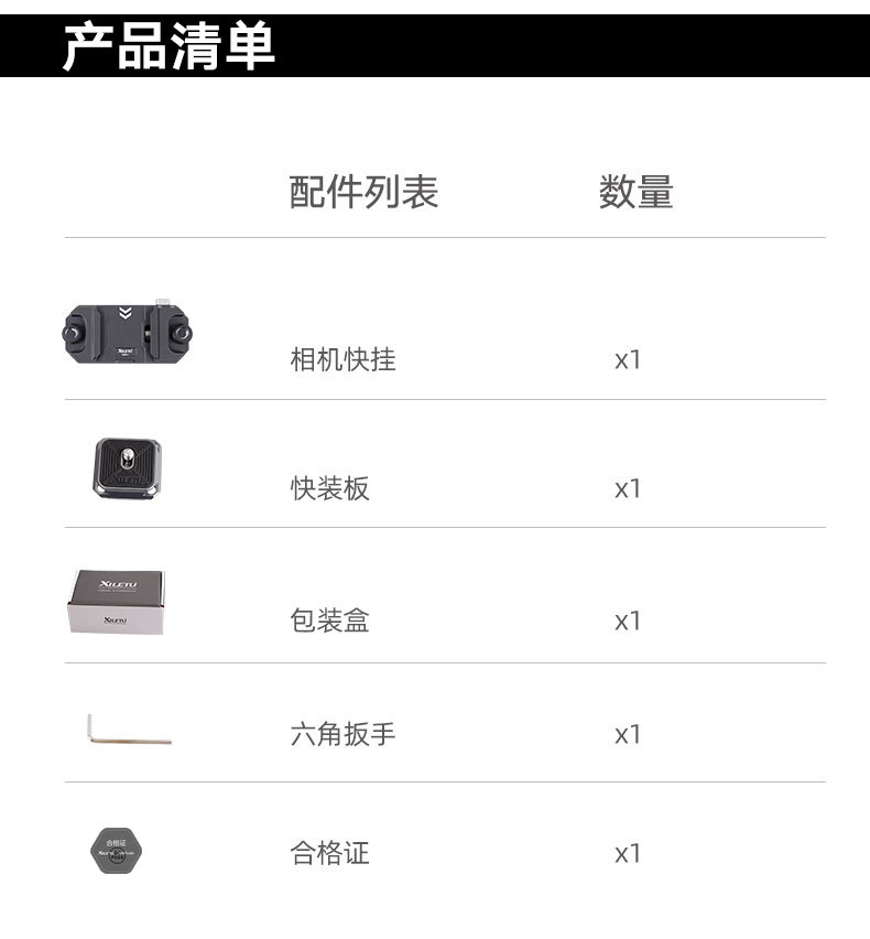 Modelo,XQD-1+XPQ-1,XQD-1+PQ-38,Clip único XQD-1A,XQD-1+XPQ-2,PQ38 Placa de carga rápida,XPQ-2