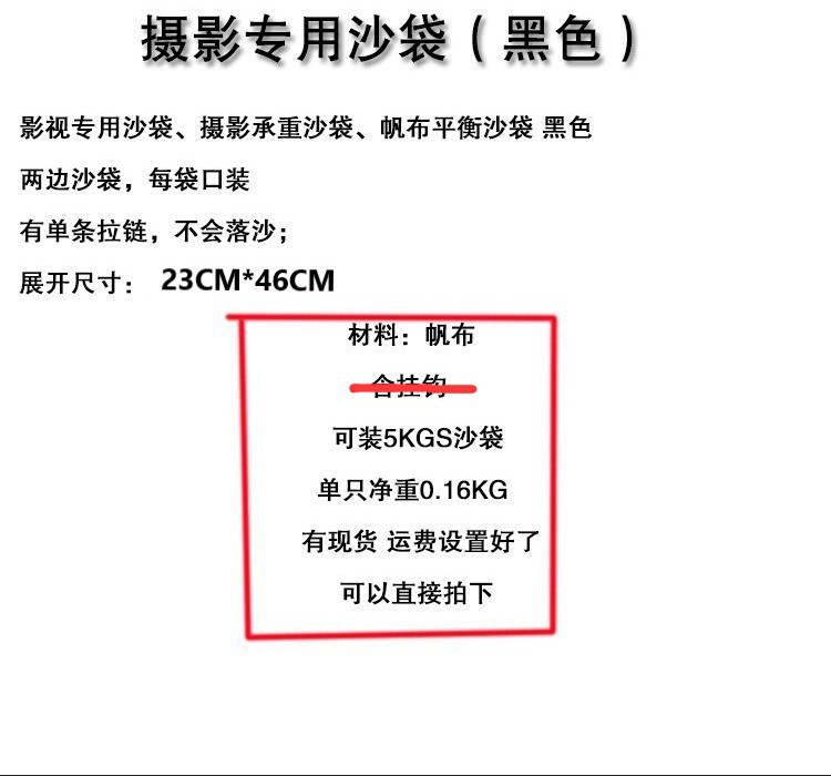 Fotografía luz de techo doble cremallera equilibrio bolsa de arena negro estudio de la vela pesada bolsa de arena sin gancho