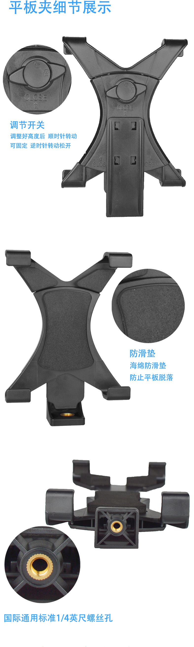 平板夹 手机支架底座 pad支架 平板手机支架 手机架懒人支架桌面 平板夹子 云台 平板夹懒人追剧神器 手机支架桌面 可折叠 ipad夹 ipad夹 车载 ipad 夹具
