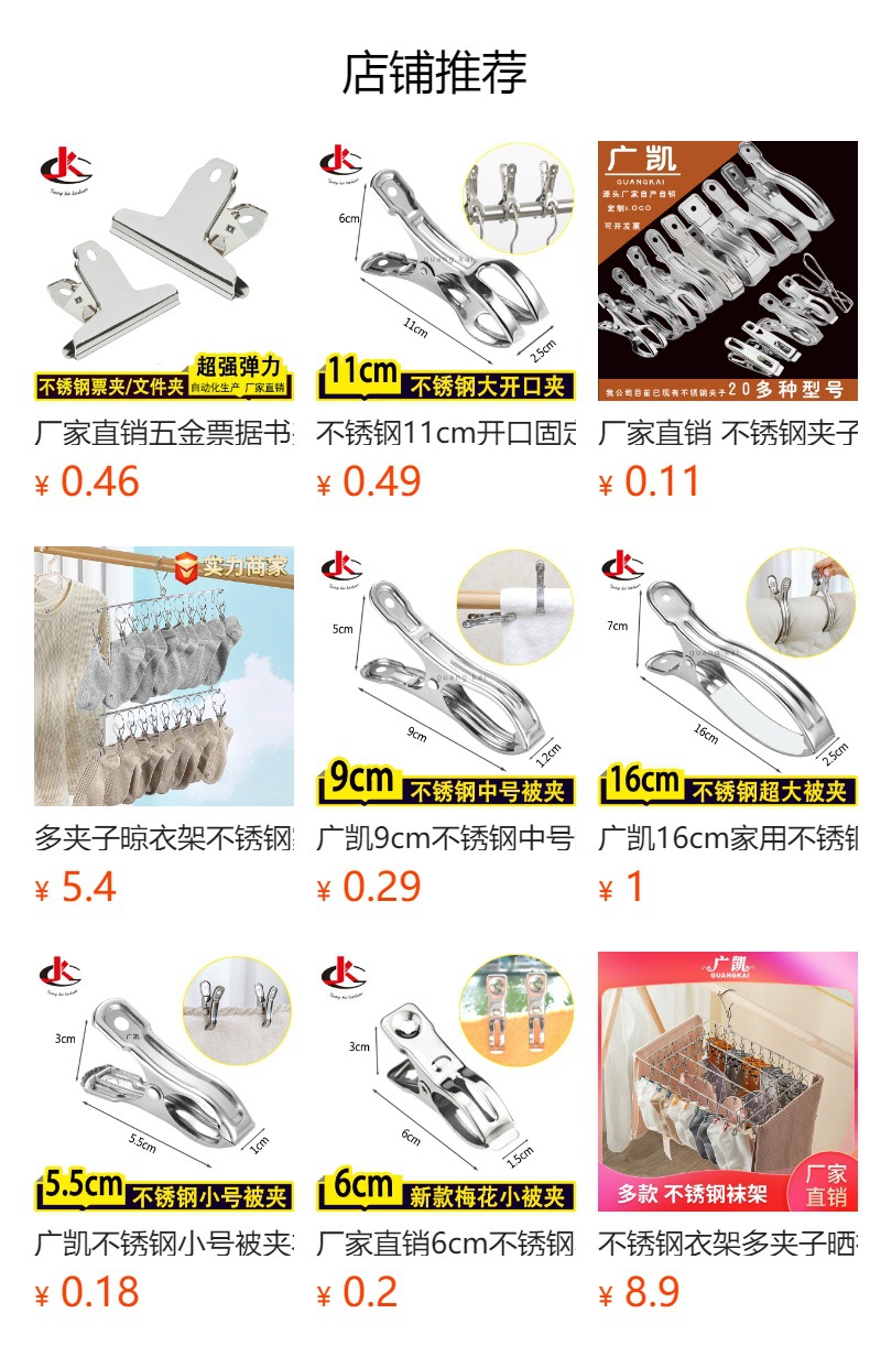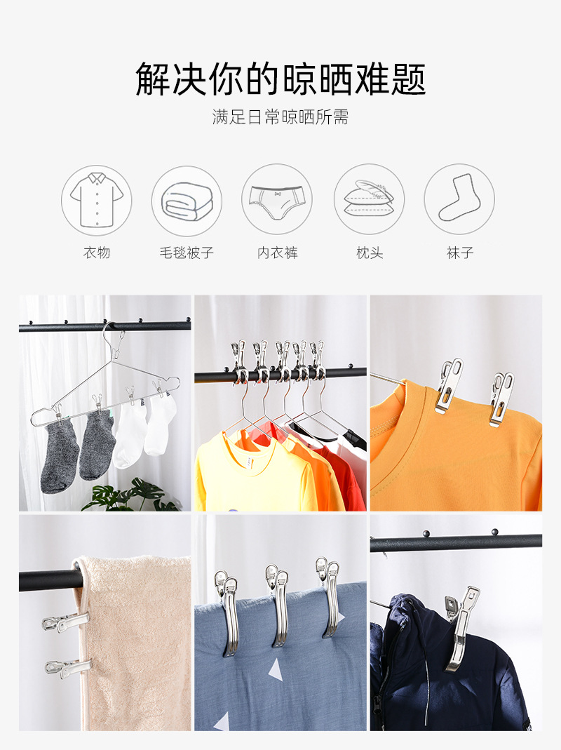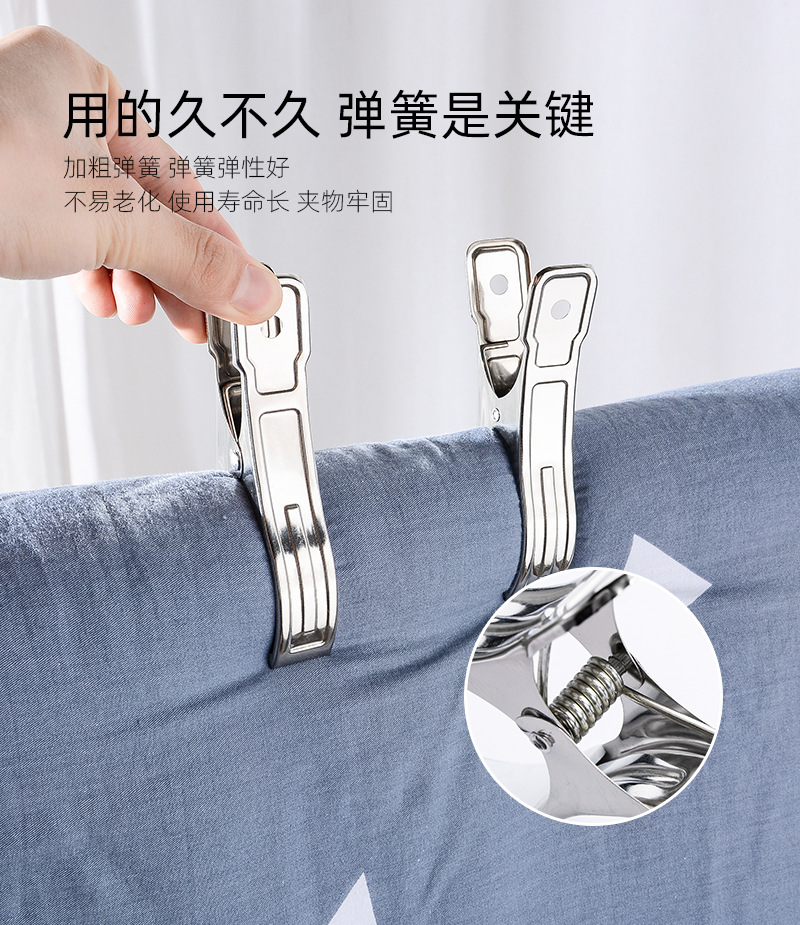 Acero inoxidable 11cm abierto fijo ropa clip viento edredón clip de ropa clip grande abierto colcha clip percha