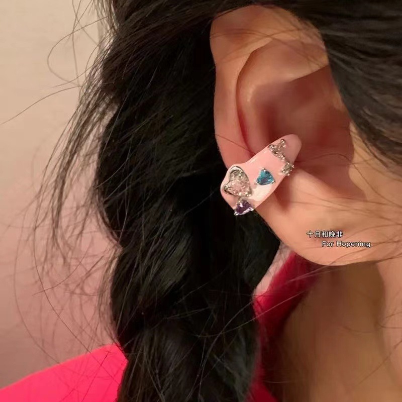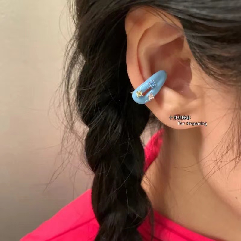 Nuevo lindo registro juvenil púrpura colorido diversión gota aceite oreja clip hembra oreja hueso clip sin pendientes perforados para las mujeres
