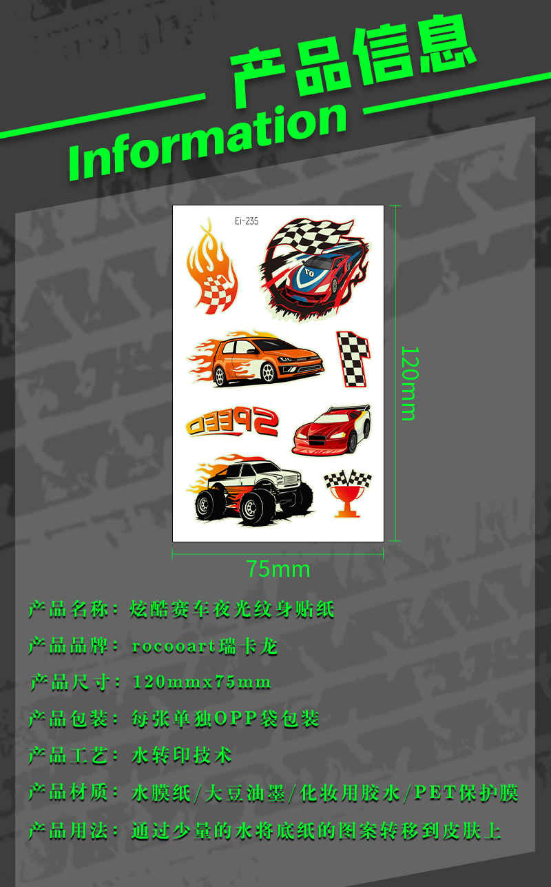 | Patrón | Ei-235 (pegatina tatuaje Luminoso),Ei-236 (pegatina tatuaje Luminoso),Ei-237 (pegatina tatuaje Luminoso),Ei-238 (pegatina tatuaje Luminoso),Ei-239 (etiqueta luminosa tatuaje),Ei-240 (pegatina tatuaje Luminoso),Ei-241 (pegatina tatuaje Luminoso),Ei-242 (pegatina tatuaje Luminoso),Ei-243 (etiqueta engomada luminosa del tatuaje),Ei-244 (etiqueta engomada luminosa del tatuaje),Ei-245 (pegatina tatuaje Luminoso),Ei-246 (pegatina tatuaje Luminoso) |