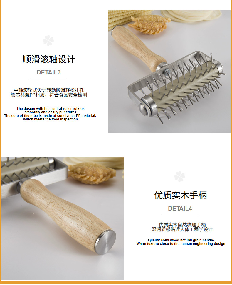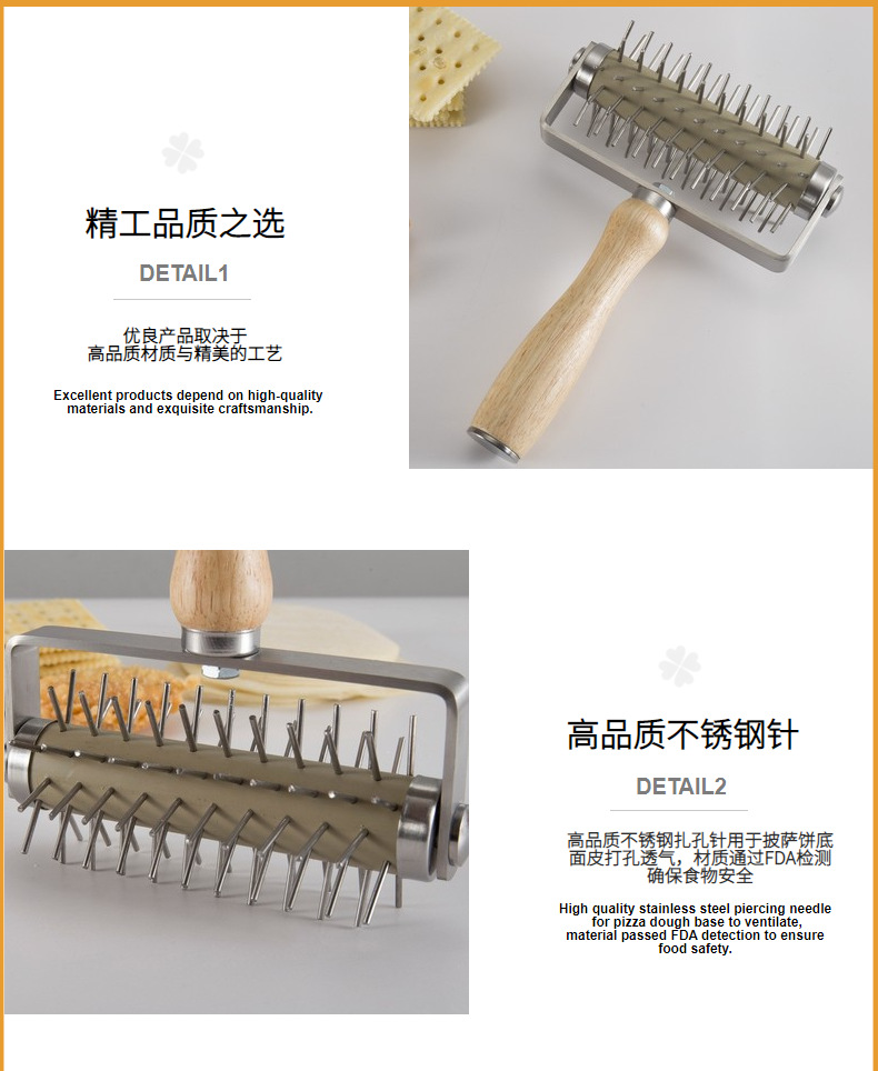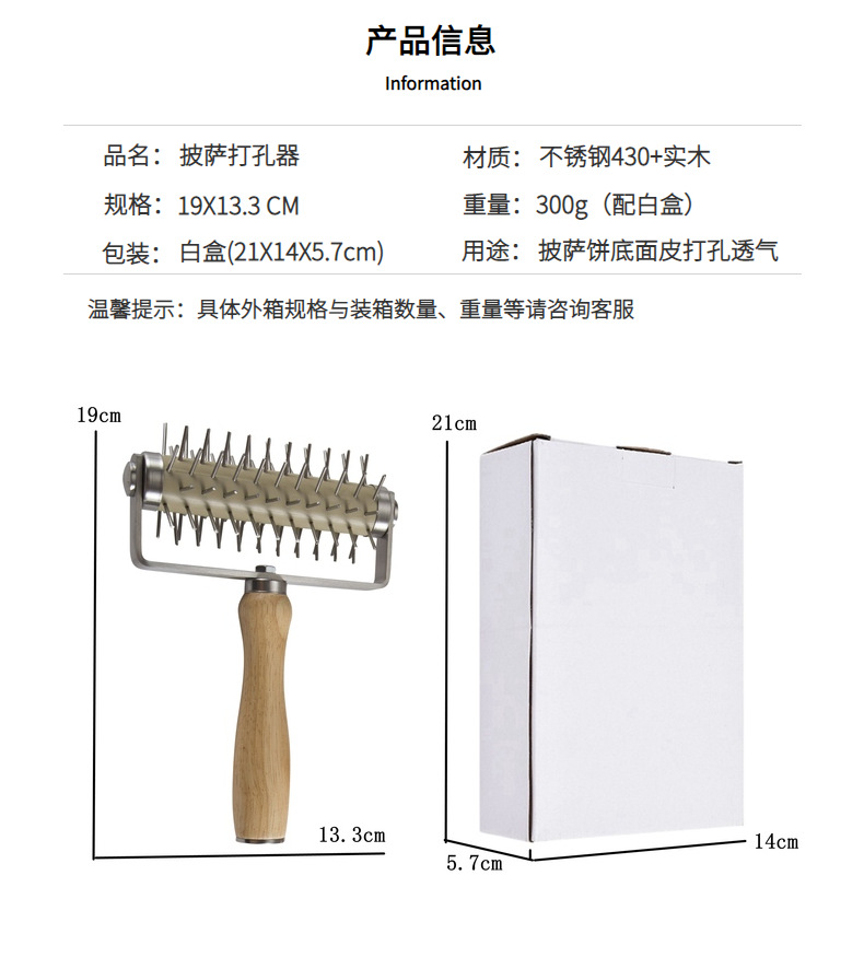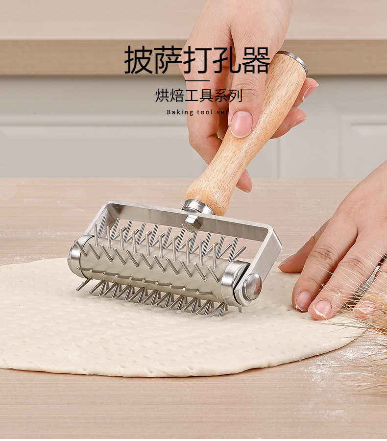 用途:制作披萨或其他烘焙食品时,在披萨面皮上均匀打孔,以确保烘烤时受热均匀,避免面皮鼓起,使披萨底部更加酥脆