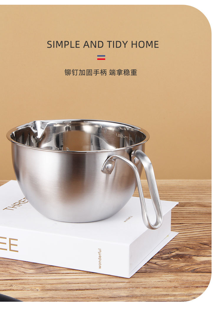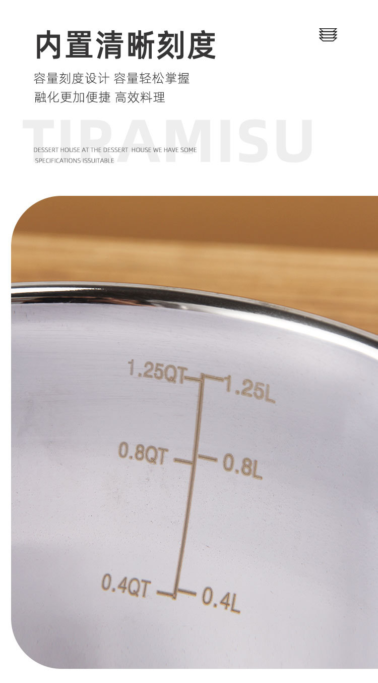 4、不锈钢器皿内侧有时会因盛放物中含有铁等物质的影响而产生一些红色锈斑点,可用温水加入稀释醋浸泡三十分钟后,充分清洗。