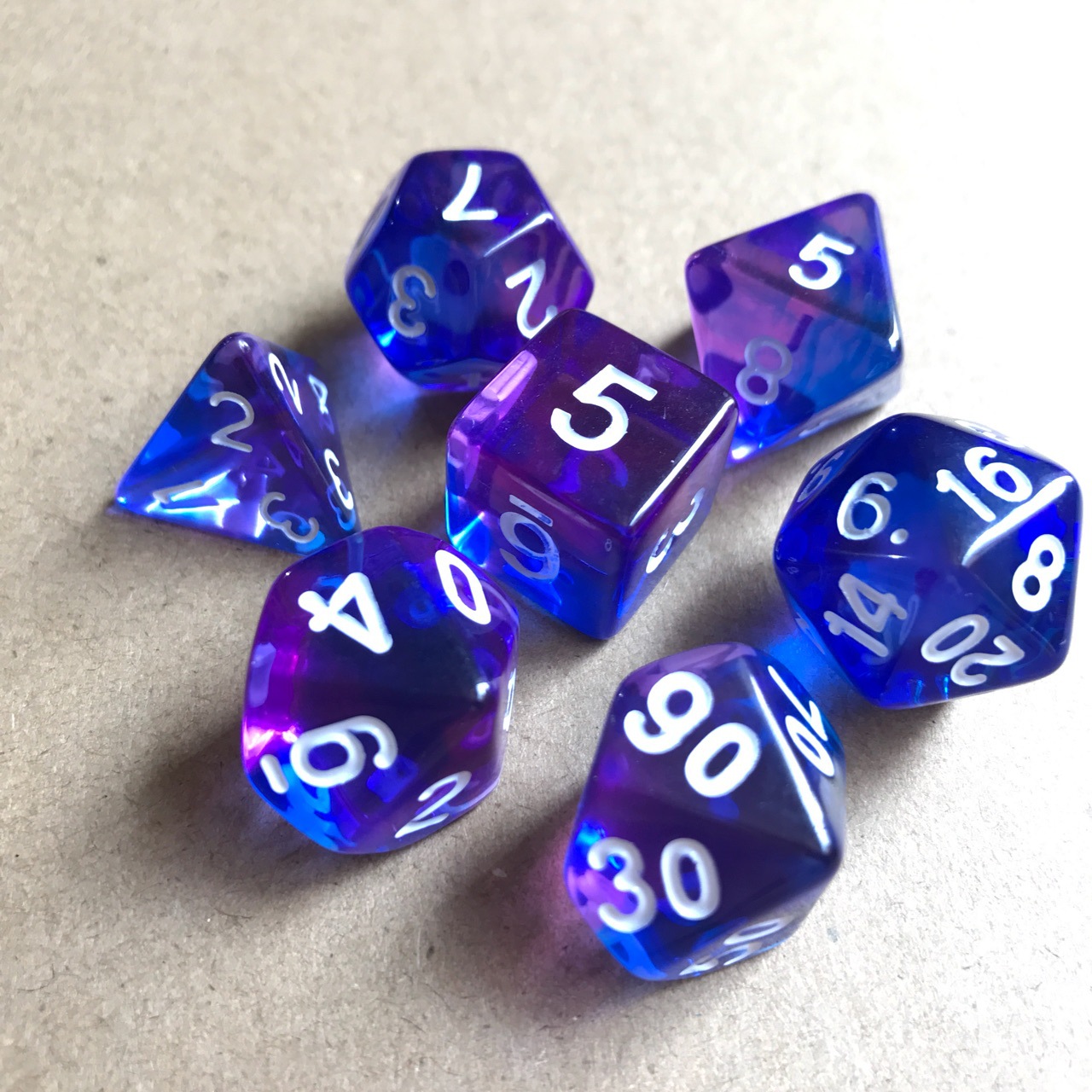 规格:7个套分别是:20面,12面,10面0-9,100面00-90,8面,6面,4面各1颗(7颗/套