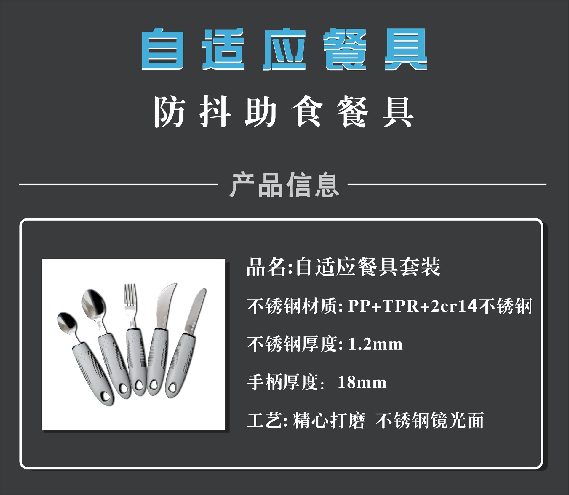 | Especificaciones | Juego de cinco piezas gris con mango pequeño,Juego de bistec recto gris de cuatro piezas con mango pequeño,Juego de bistec curvo gris de cuatro piezas,Cuchara grande de tres piezas con tenedor de ternera curvo con mango pequeño gris,Juego de tres piezas de bistec recto gris con mango pequeño,Cuchara grande de tres piezas con tenedor de carne de res recto con mango grande negro,Cuchara grande de tres piezas con tenedor de ternera curvo con mango grande negro,Juego de bistec recto negro de cuatro piezas con mango grande,Juego de bistec curvo negro de cuatro piezas con mango grande,Juego de cinco piezas con mango grande negro |