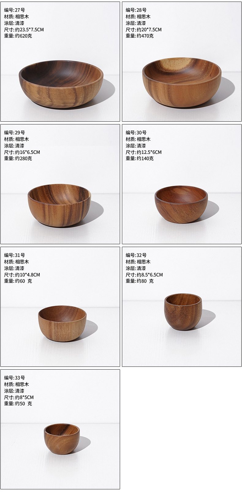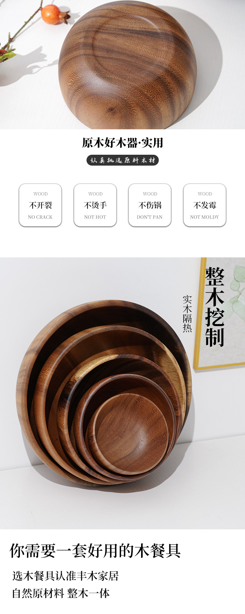 木制品区别于塑料餐具,它大部分部位是由树木的不同部位且人工打磨、木纹、色泽、重量、规格均有微小差别,无法理解与包容的小主还请慎重