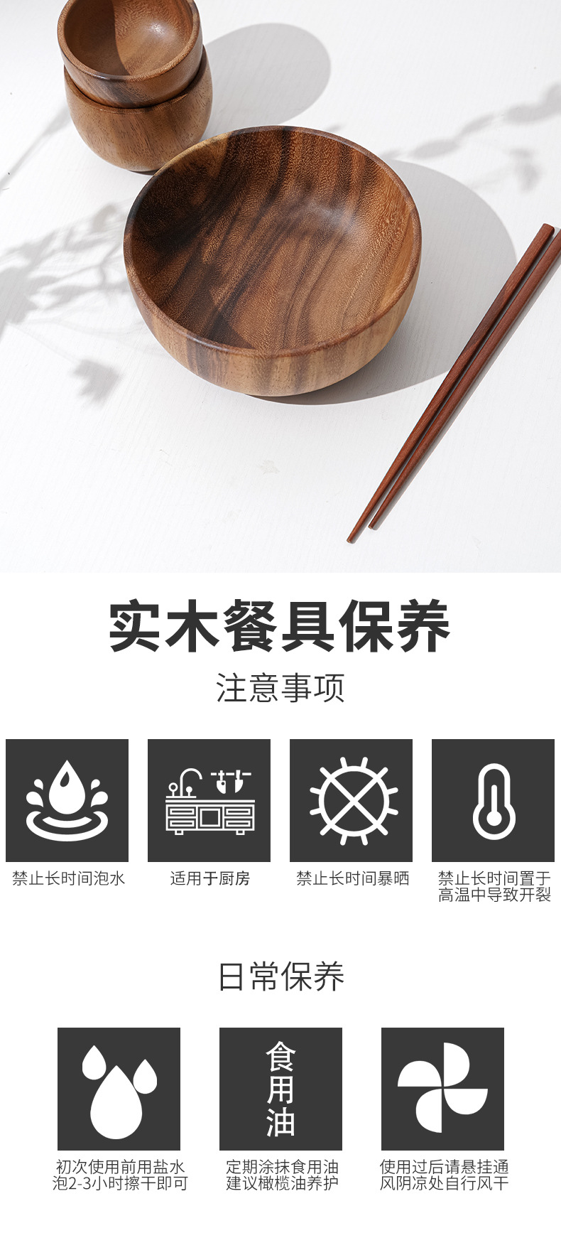 1. 初次使用木器,可以用消毒柜的臭氧层消毒,无臭氧消毒的可以用温盐水浸泡1小时,然后正常冲水清洗,清洗后放置通风干燥处晾干。