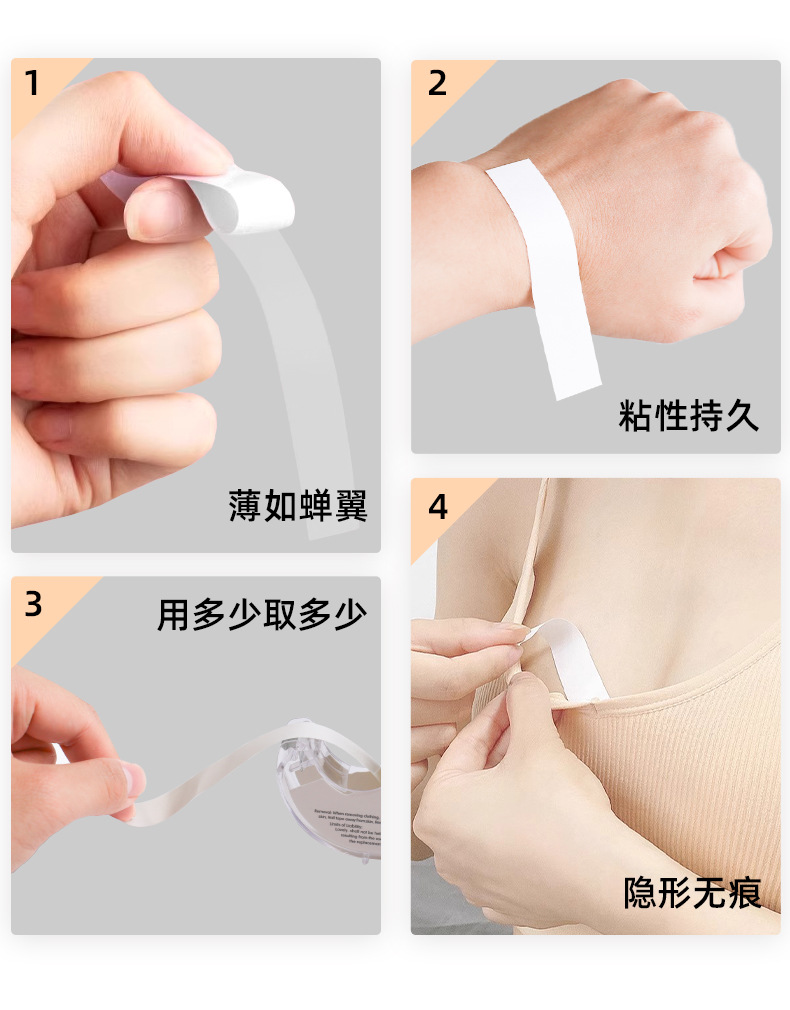 Pegatina antiiluminación adhesiva de doble cara PET, pegatina de fijación de camisa de ropa interior desechable, pegatina antiiluminación transparente invisible y sin costuras