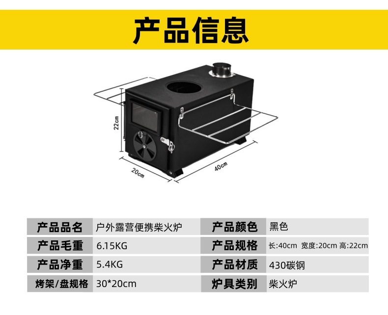 柴火炉首次使用核心步骤:需在开阔空地燃烧20-30分钟,通过高温让炉体表面水分充分气化蒸发,避免后期在通风固定场地使用时出现雾化(多为水分受热产生的烟雾或水汽)。