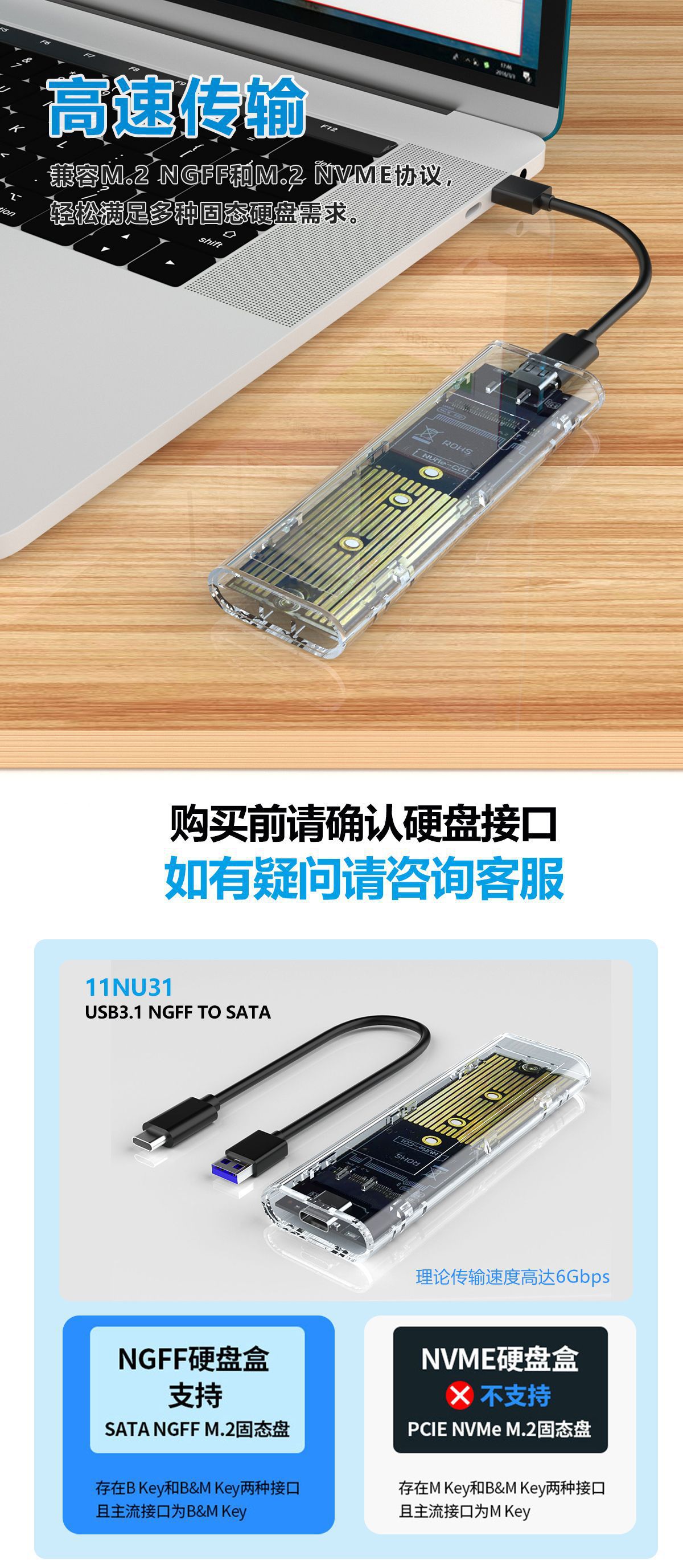 | Artículo No. | Caja de disco duro de estado sólido móvil transparente 11NU31 M.2 |