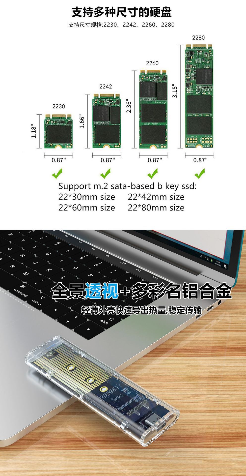 | Color | NGFF chip de protocol-JMS576 único,NVME chip de protocol-JMS583 único,Protocolo dual NGFF + NVME |