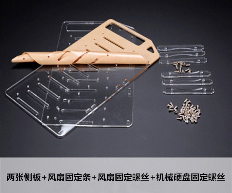 组件:两张侧板+风扇固定条+机械硬盘固定螺丝+风扇固定螺丝