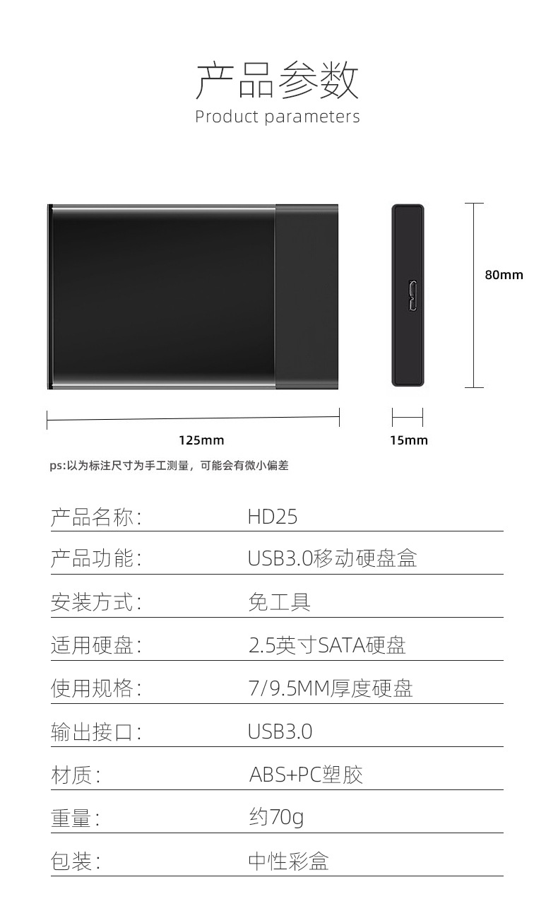 | Lista de embalaje | Caja de disco duro * 1 cable de datos * 1 |