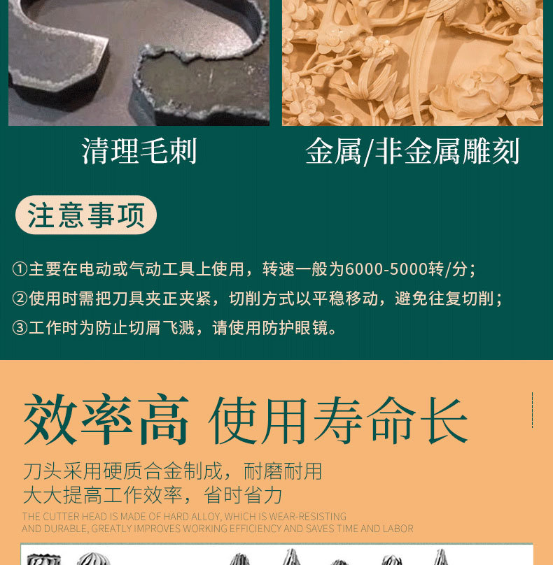 | Ámbito de aplicación | Puede procesar hierro fundido, acero fundido, acero al carbono, acero aleado, acero inoxidable, cobre, aluminio y otros metales, y mármol, jade, hueso y otros metales no metálicos. |