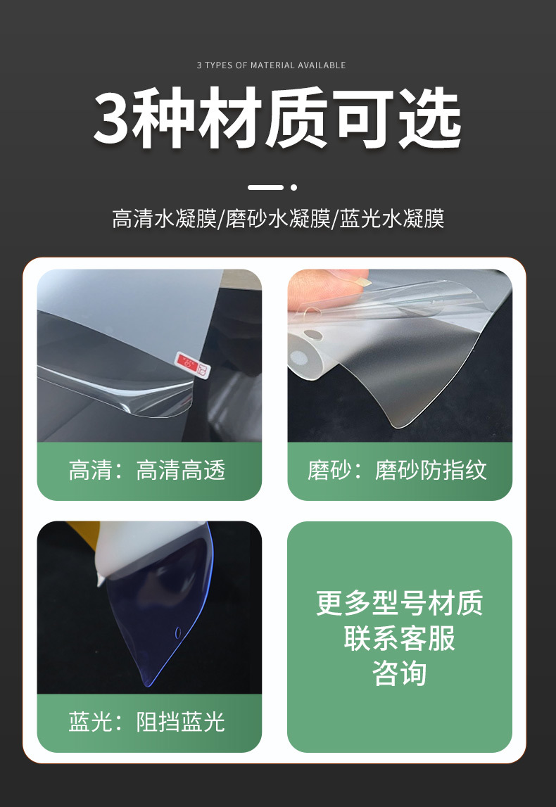 | color | Pegatina de posicionamiento de gel de alta definición (versión vertical de la película de la pantalla interna),Posicionamiento de la película de hidrogel de alta definición (versión horizontal de la película de pantalla interior),Pegatina de posicionamiento, gel de agua esmerilado (versión vertical de la película de la pantalla interna),Colocación de la película de hidrogel mate (versión horizontal de la película de pantalla interior),Colocación de gel de luz azul (versión vertical de la película de la pantalla interna),Posicionamiento de la película de hidrogel de luz azul (versión horizontal de la película de pantalla interior) |