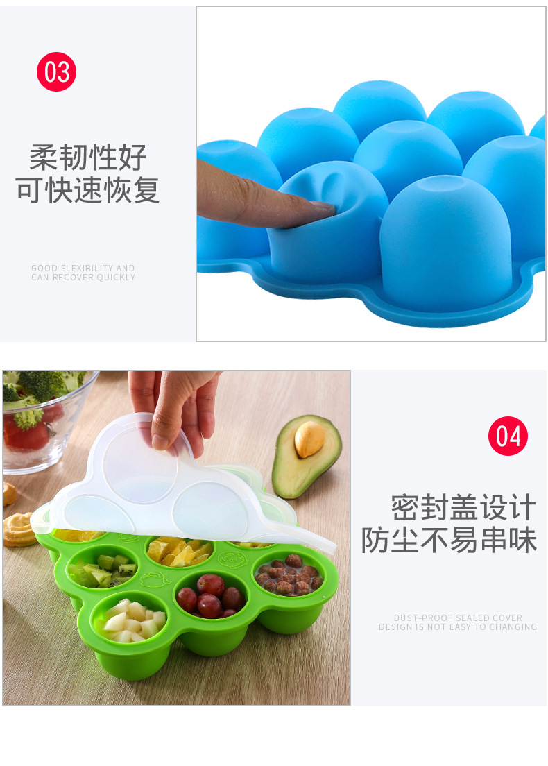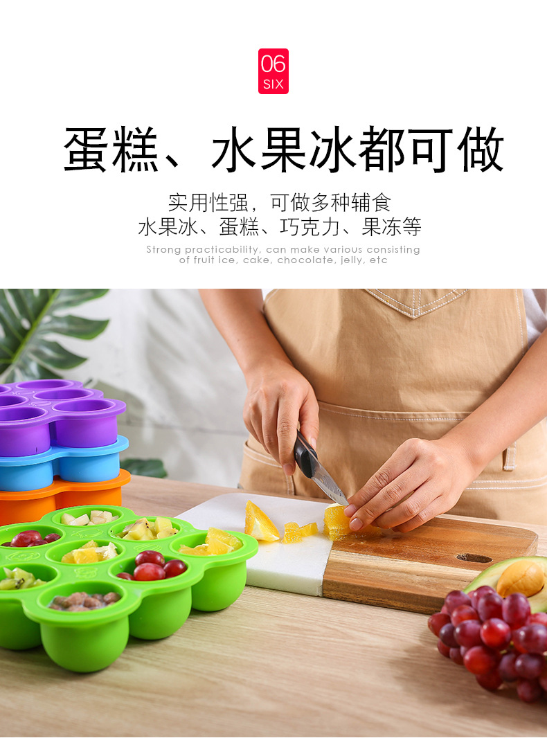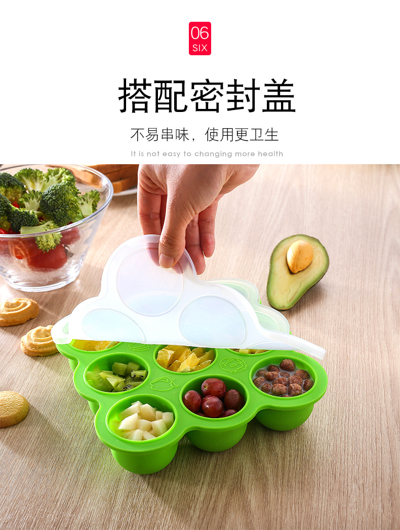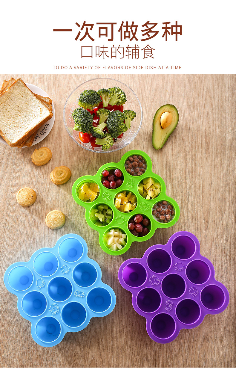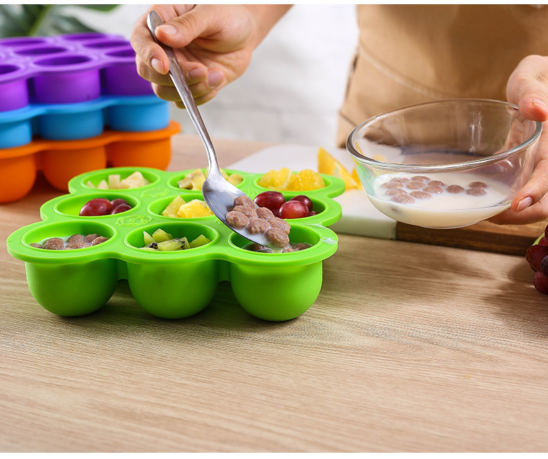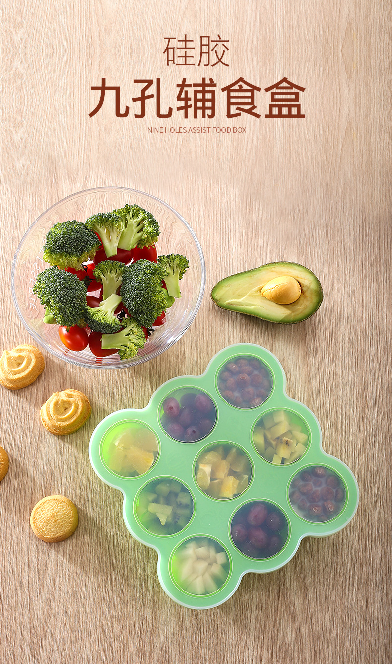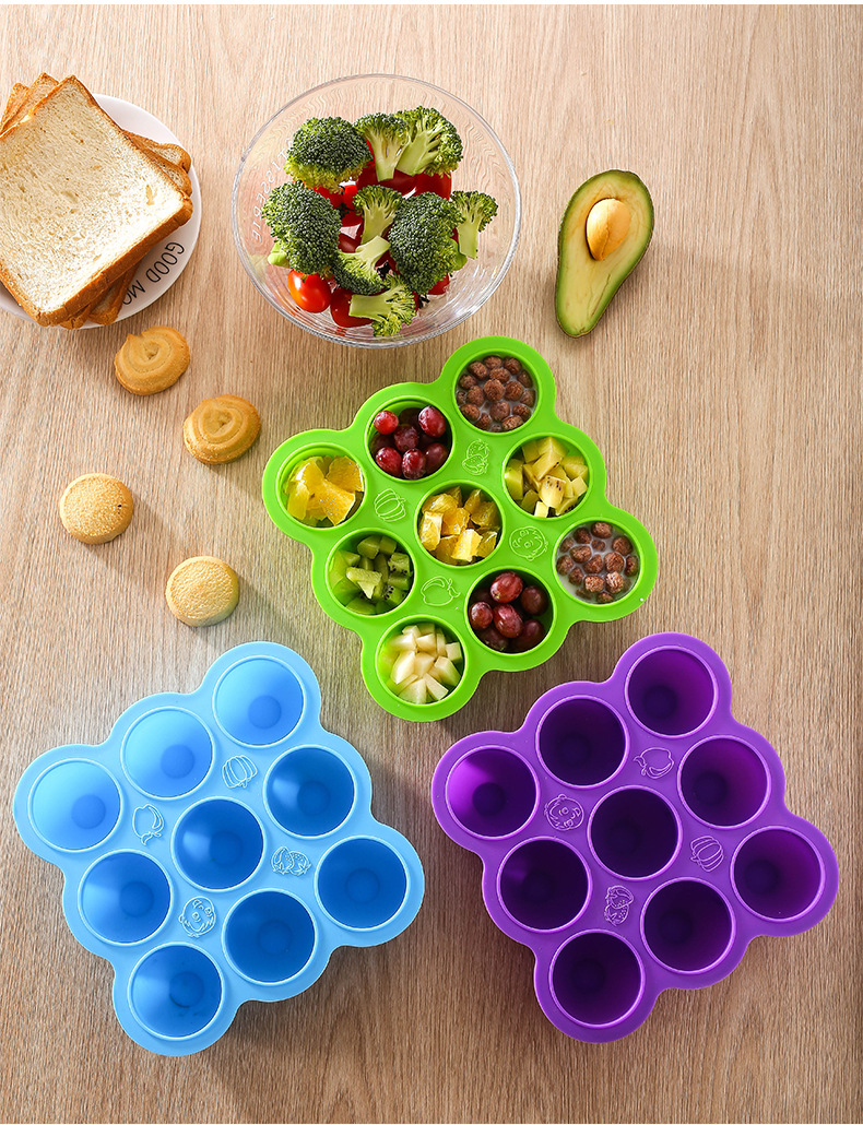 9-agujero silicona bebé niños hogar fruta comida suplemento caja con tapa crisper congelado almacenamiento hielo cubo hielo bandeja molde