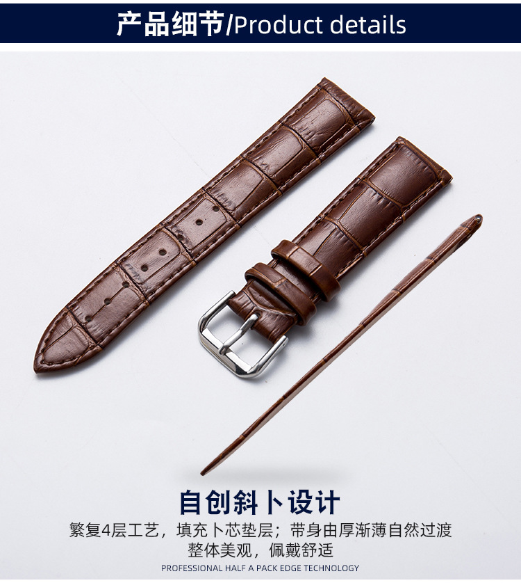 Correa de reloj de cuero genuino en stock al por mayor correa de reloj para hombres y mujeres de piel de vaca patrón de bambú accesorios de reloj de una sola pieza entrega