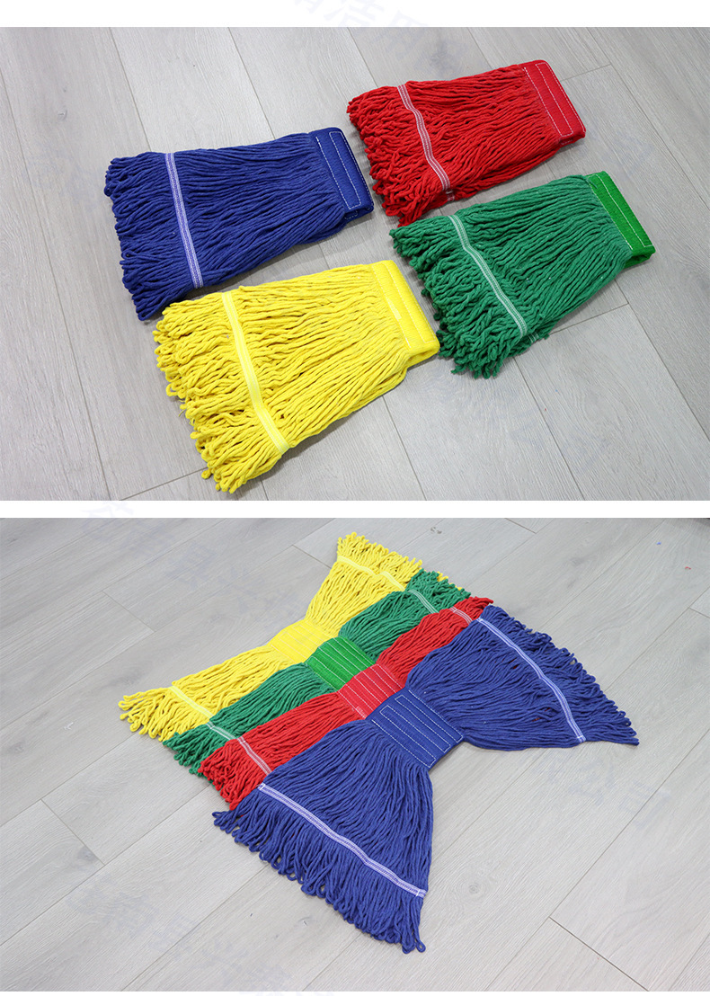 Cabezal de mopa de malla ancha de repuesto de hilo de algodón de cuatro colores personalizado de fábrica, cabezal de mopa de agua desmontable, mopa para hospitales y propiedades, OEM.