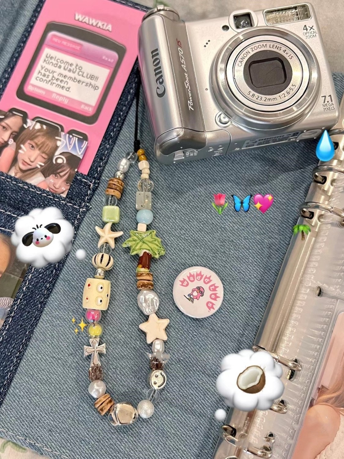 Cachorro e Isla-Pequeño Libro Rojo adornos de teléfono móvil originales hechos a mano con cuentas CCD adornos Cámara anti-cuerda perdida