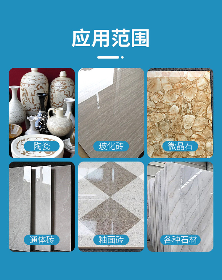 | Alcance DE LA APLICACIÓN | Todos los azulejos cerámicos, losas de roca, mármol, piedra microcristalina, azulejos vitrificados, azulejos de cuerpo entero, esmalte completo |