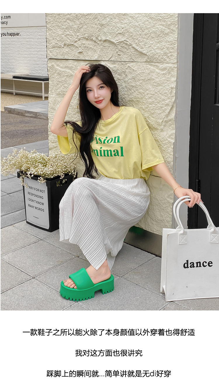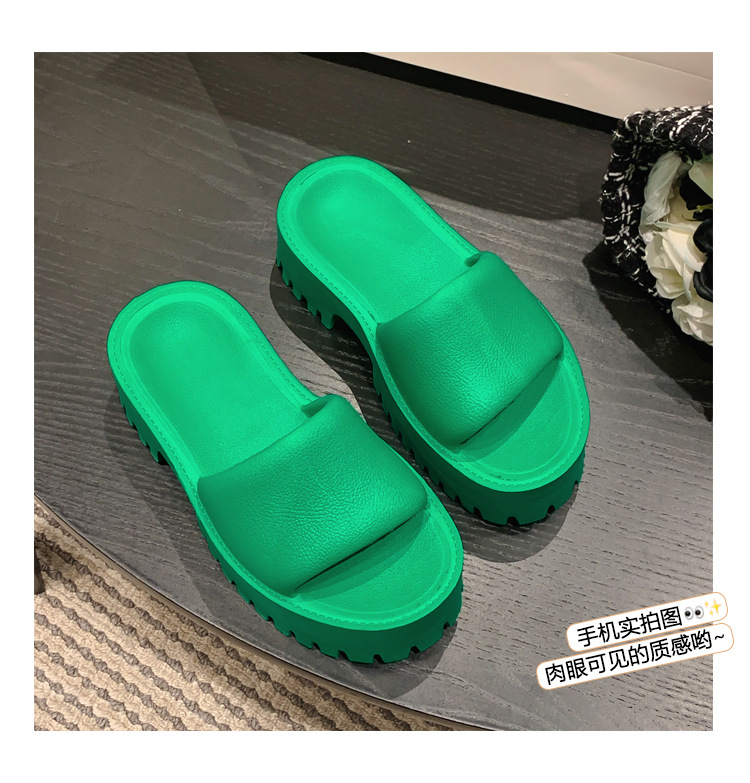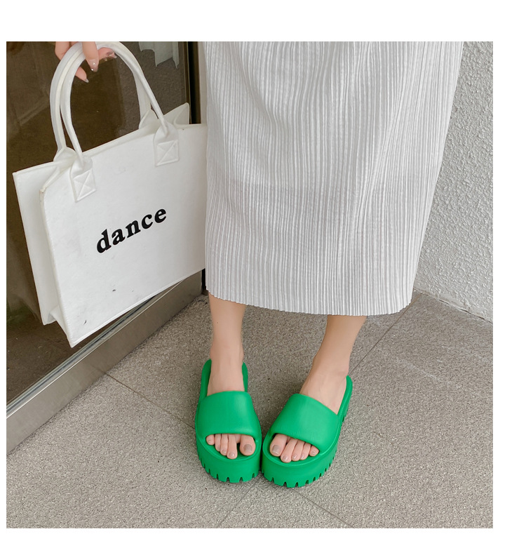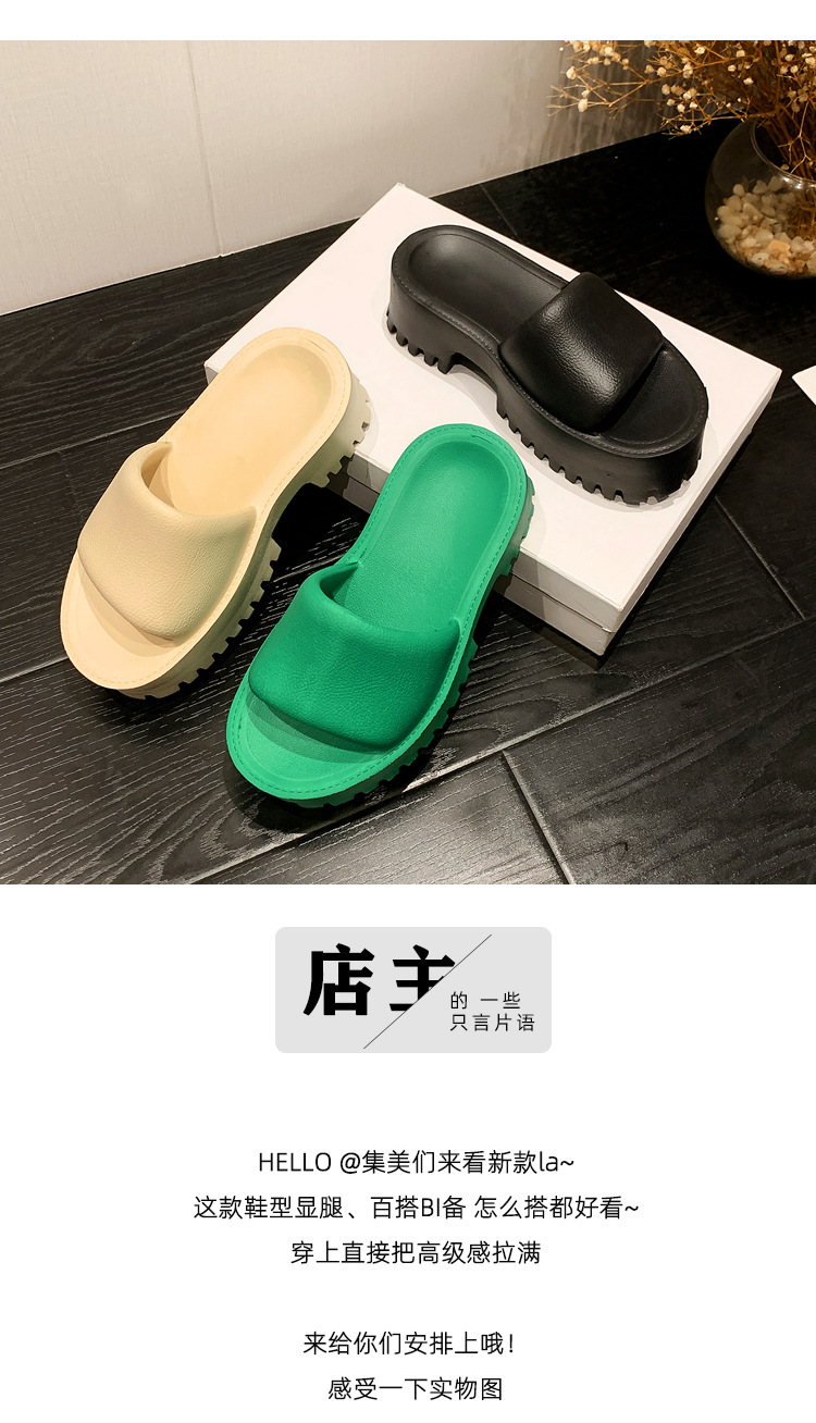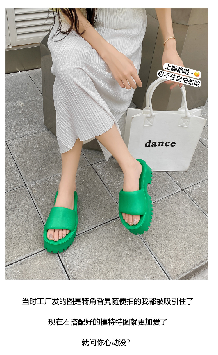 Zapatillas de suela gruesa para mujer, estilo europeo y americano, modernas y elegantes, de EVA, con suela plana, de gran tamaño, para uso exterior, sandalias de una línea con suela suave para mujer, cómodas