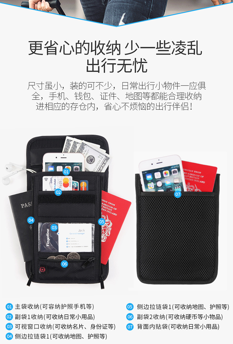 El nuevo Xinghui portátil, antirrobo, cepillo, pasaporte, bolsa de almacenamiento, bolsa de almacenamiento de viaje, bolsa de identificación de gran capacidad, tarjeta