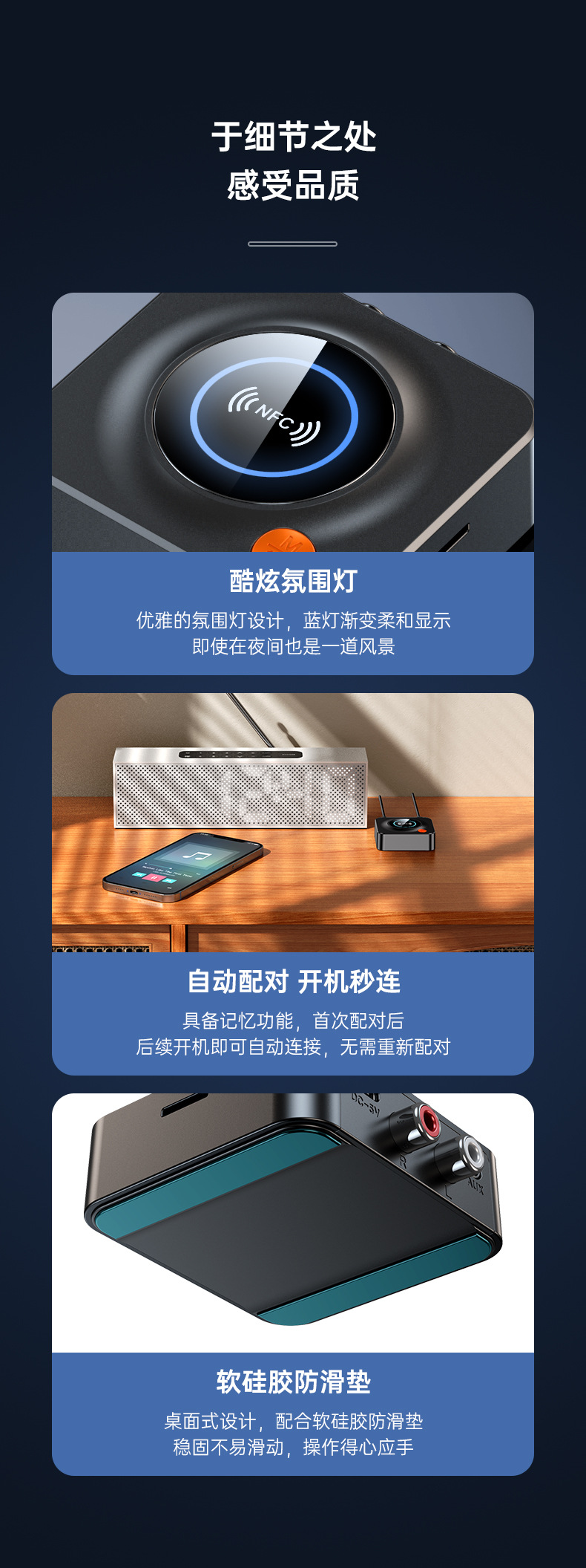 4.蓝牙接收功能:连接1部手机(支持NFC快速链接)