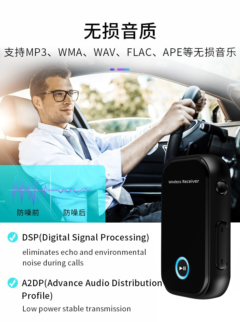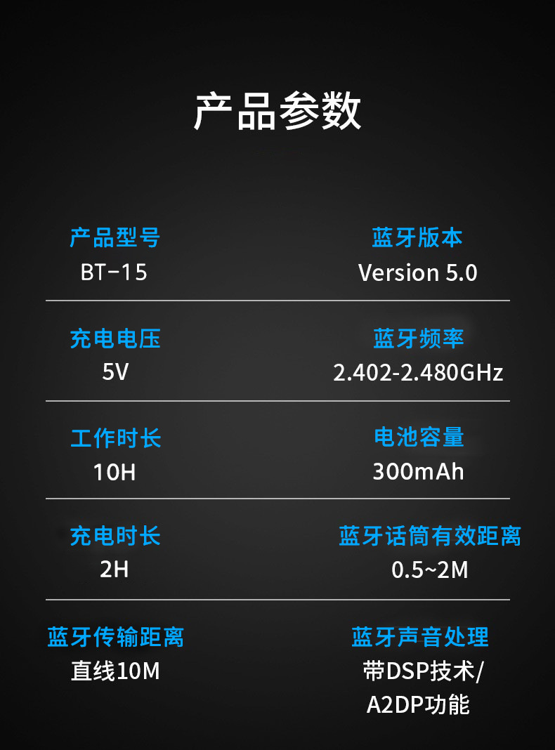 4.采用最新蓝牙5.0芯片,高敏锐麦克风,CVC降噪技术,传输距离更远,DSP信号处理技术通话更清晰