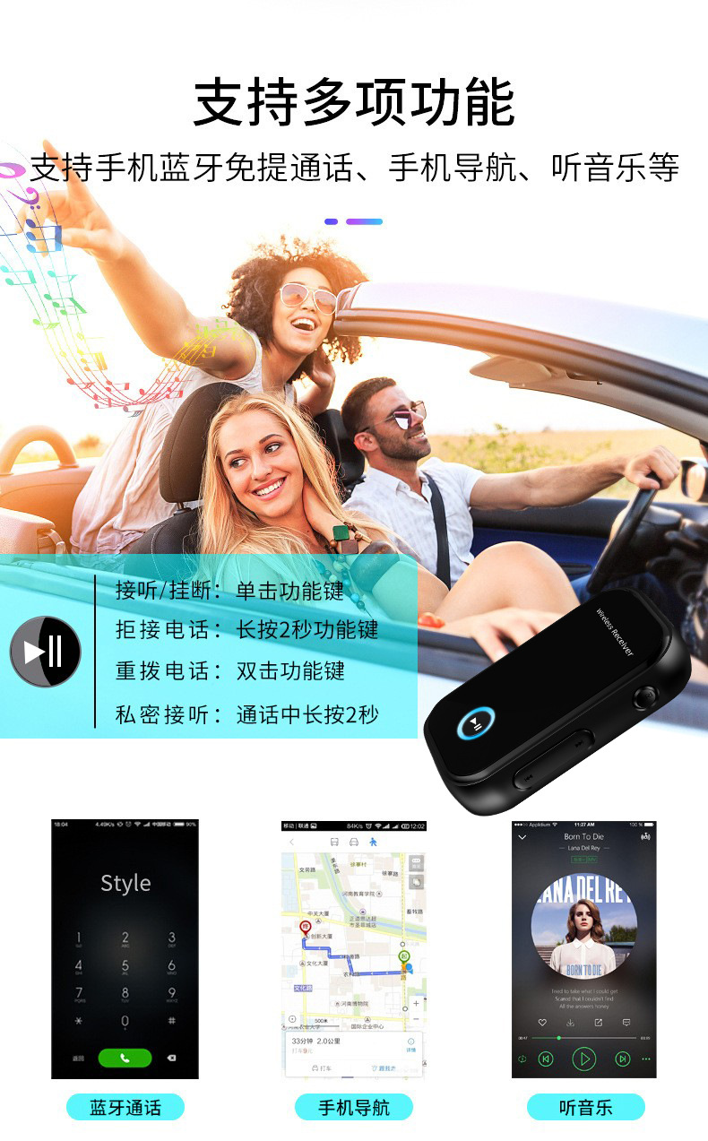 2.增加语音按键,用户在驾驶模式下,按下语音按键,轻松激活“Siri”智能语音 3.上/下曲按键设计在机身的侧边,方便用户开车时控制蓝牙音乐的上下曲