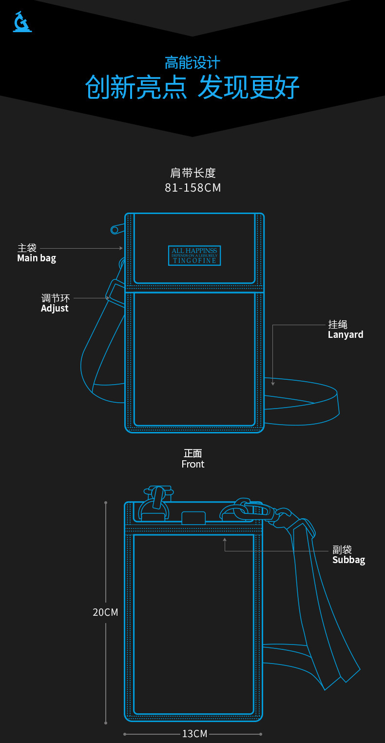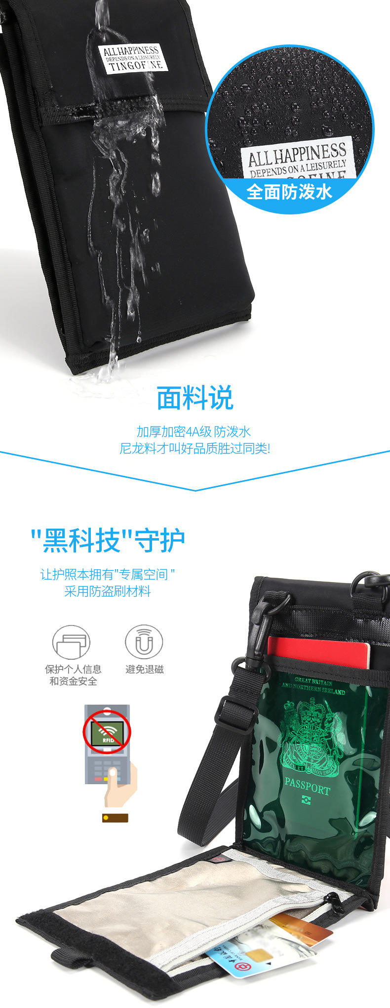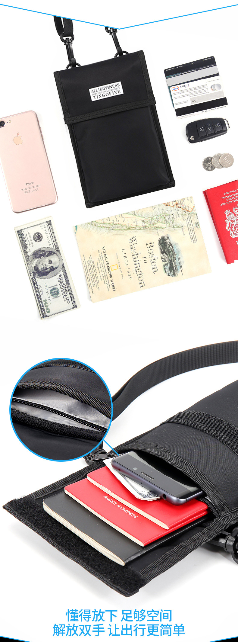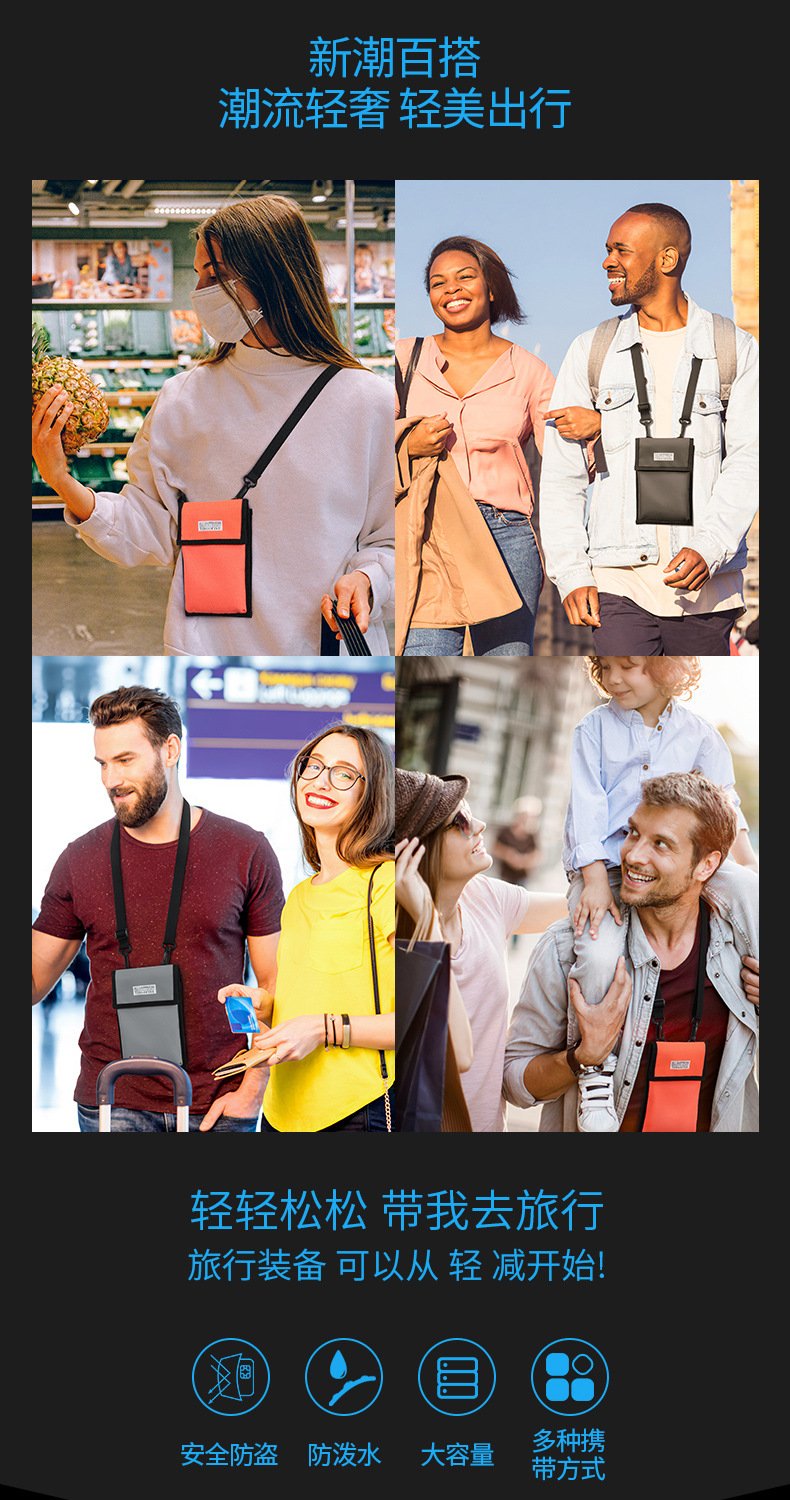 Tianxiu viaje al extranjero Cartera de nylon bolso de identificación Halter pasaporte multifuncional funda protectora de moda bolso del teléfono crossbody