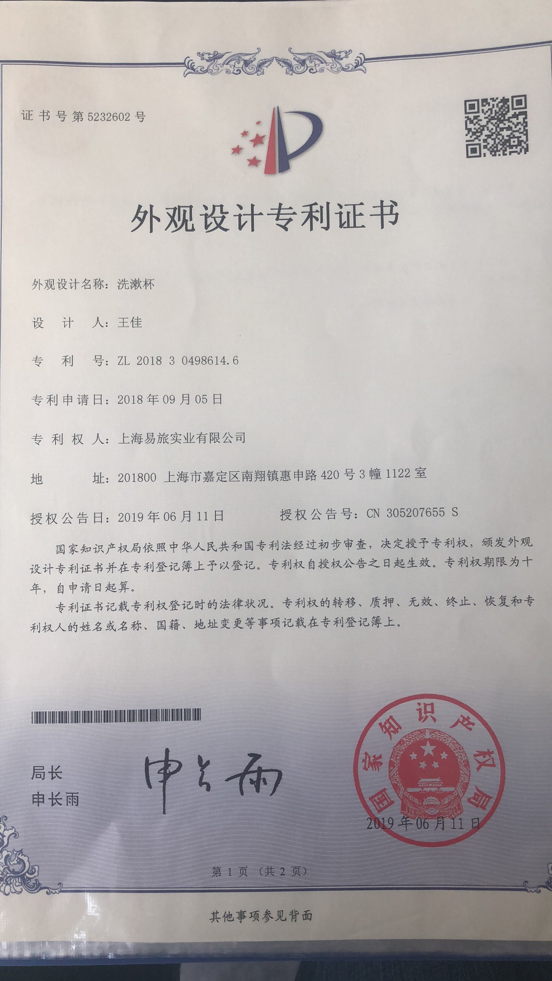 易旅 专利号:201830498614.6
