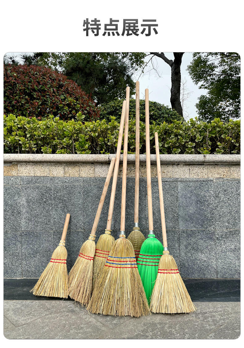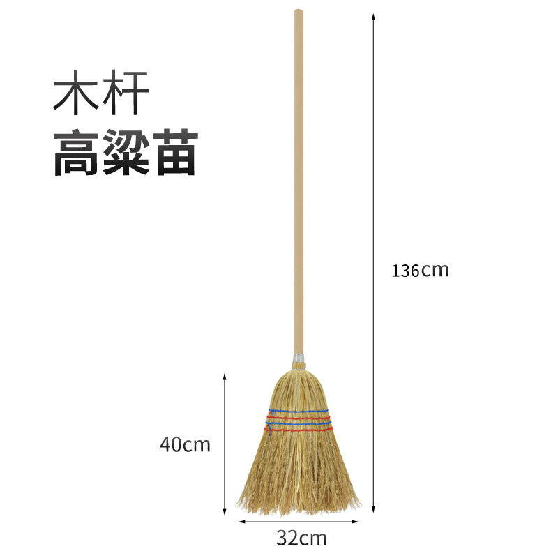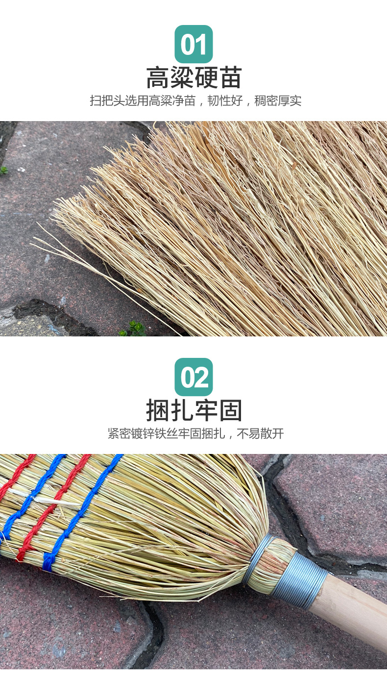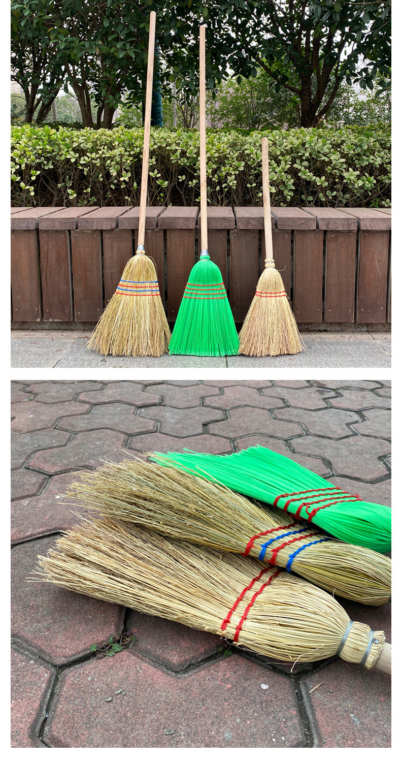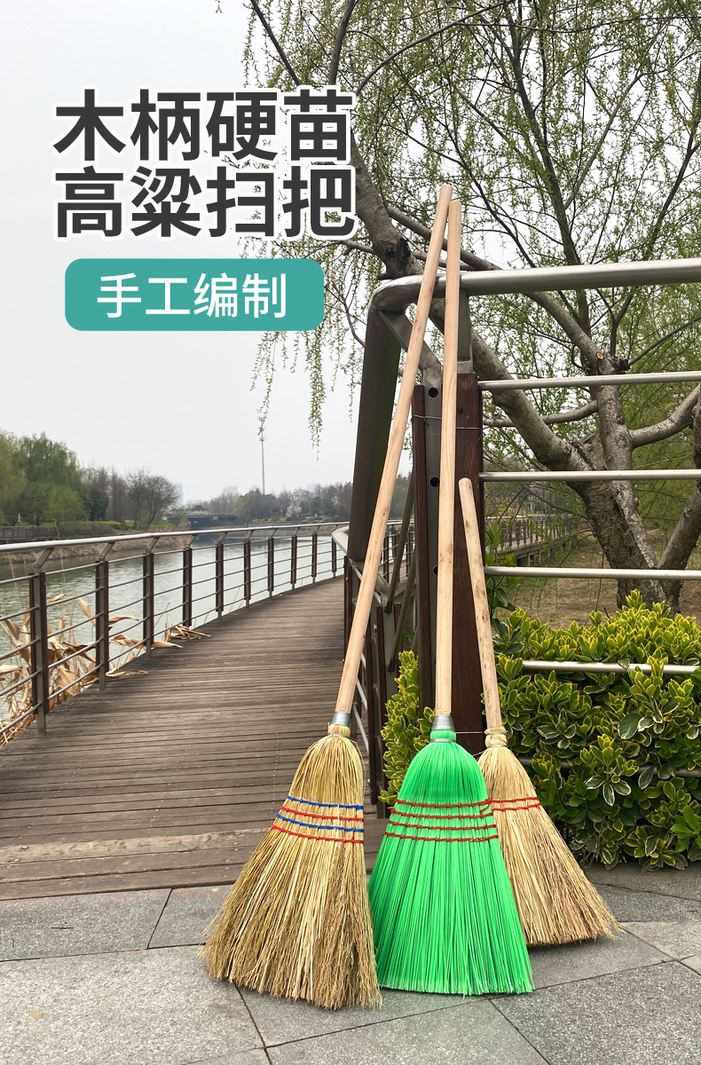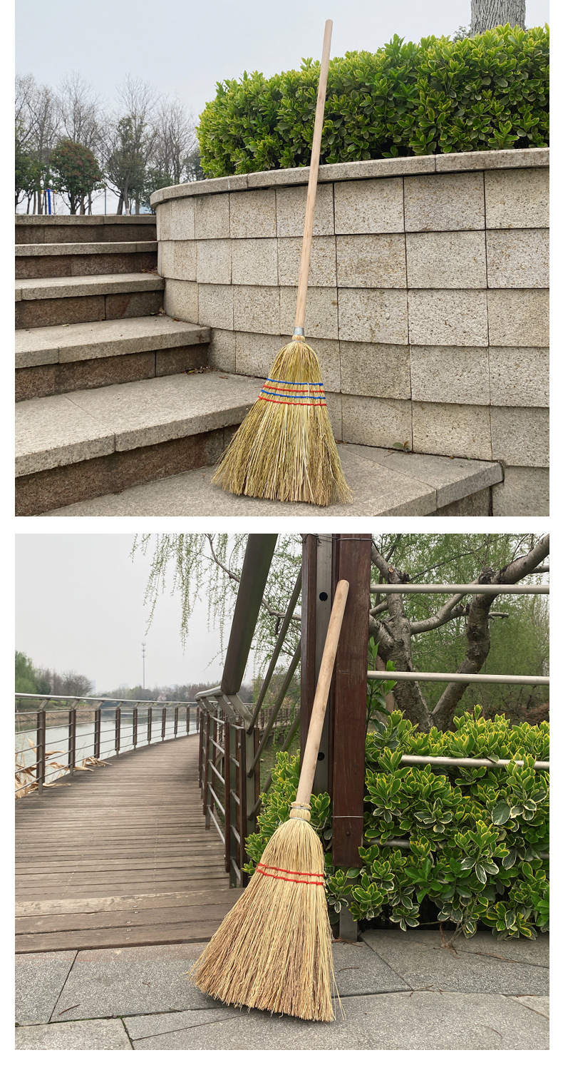 Escoba de sorgo con mango de madera largo, resistente, para limpieza de patio y saneamiento al aire libre