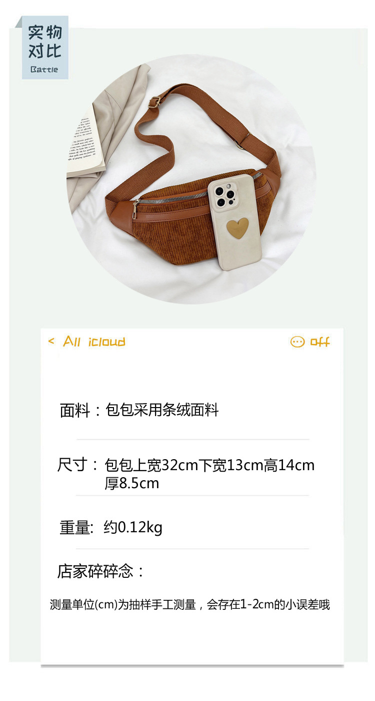 Bolsa de pecho de pana japonesa y coreana bolsa de mensajero 2023 nueva bolsa de cintura de teléfono móvil retro pequeña bolsa de hombro