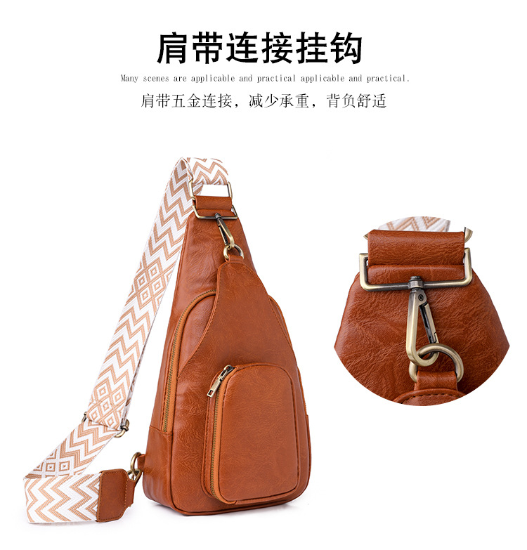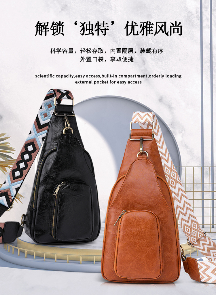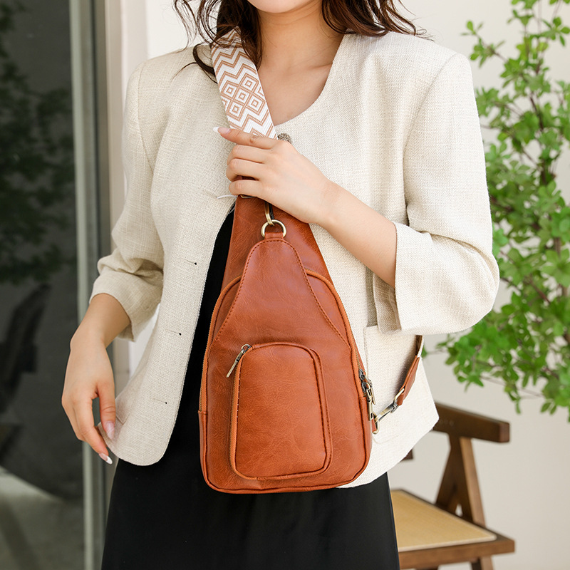 Transfronterizo 2023 nuevo bolso de pecho de mujer de PU con textura bolsa de mensajero de hombro simple correa de hombro ancha bolsa de motocicleta casual para mujer