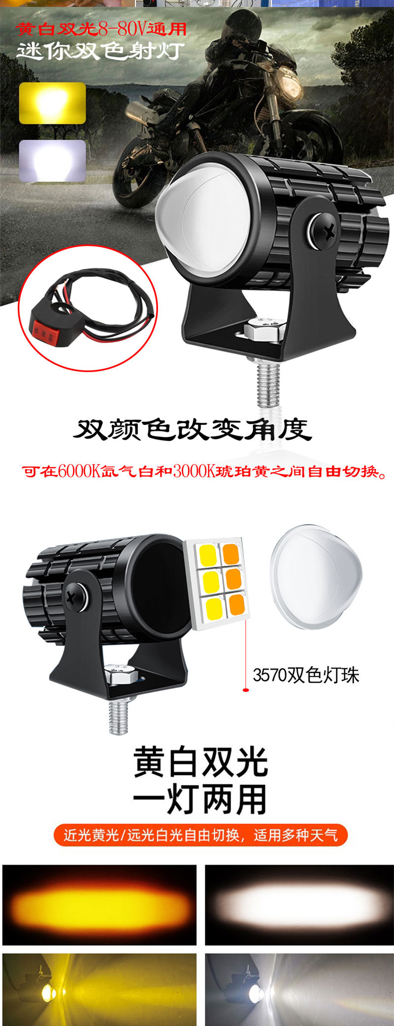 | Especificaciones del producto | Individual 12V-80V,Doble 12V-80V,Cañón de acero pequeño con host,A partir de 1000 individuales,Solo a menudo brillante,El interruptor de dos colores siempre es brillante y parpadea |