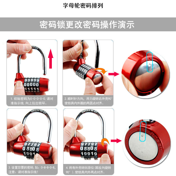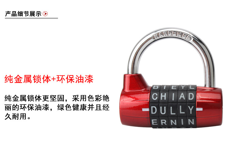 3、五位字母密码轮,更加有趣味性且方便记忆,理论组合100000种密码,可以随意设置您喜好的密码,不易忘记更加安全。