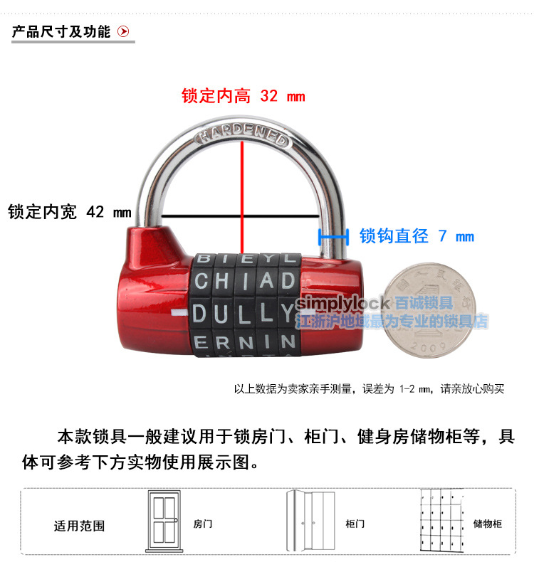 请注意哦!此链接出售的为中号五位字母轮密码锁,颜色有红色、蓝色、黑色、银色可供选择