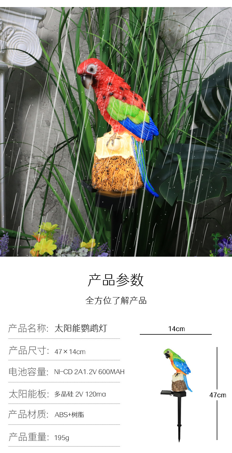 Transfronterizo resina solar loro lámpara de tierra LDE al aire libre parque decoración lámpara de césped lámpara de jardín