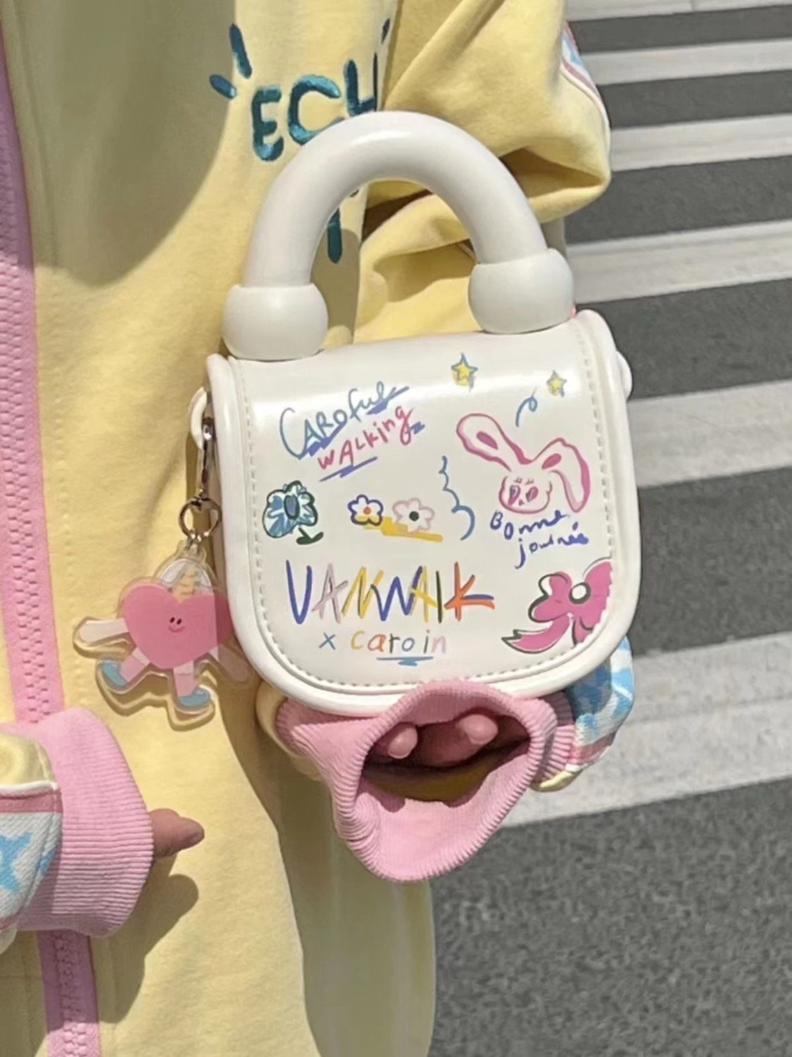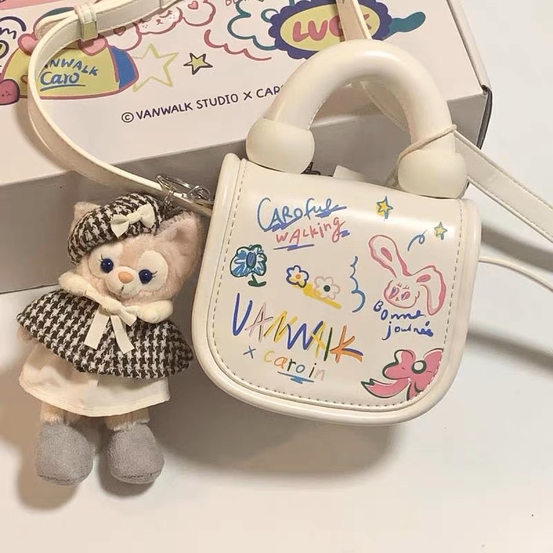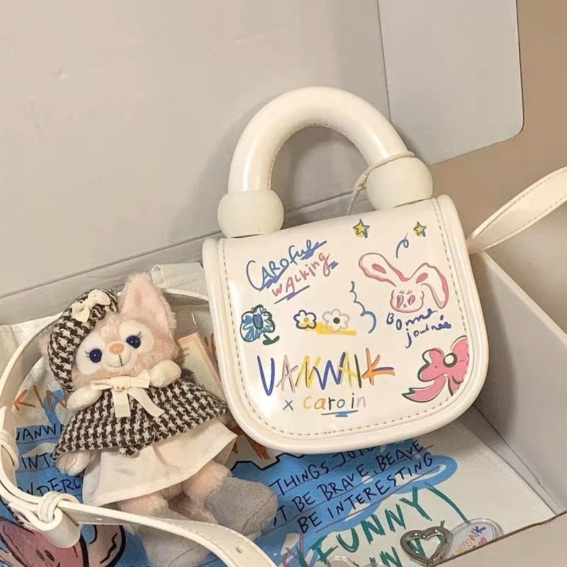 2023 primavera y verano nuevo estilo coreano estudiante bolsa de mensajero bolsa de moda Mini lindo estilo occidental de dibujos animados bolsa de graffiti para mujeres