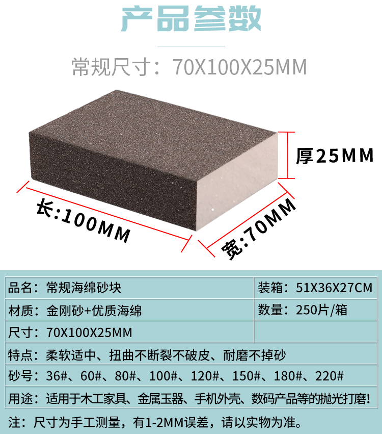 | Bloque de arena de esponja | 100*70*25mm |