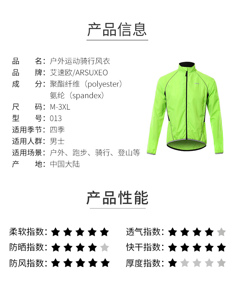 Name(产品名称) 户外骑行风衣(Cycling Jacket)