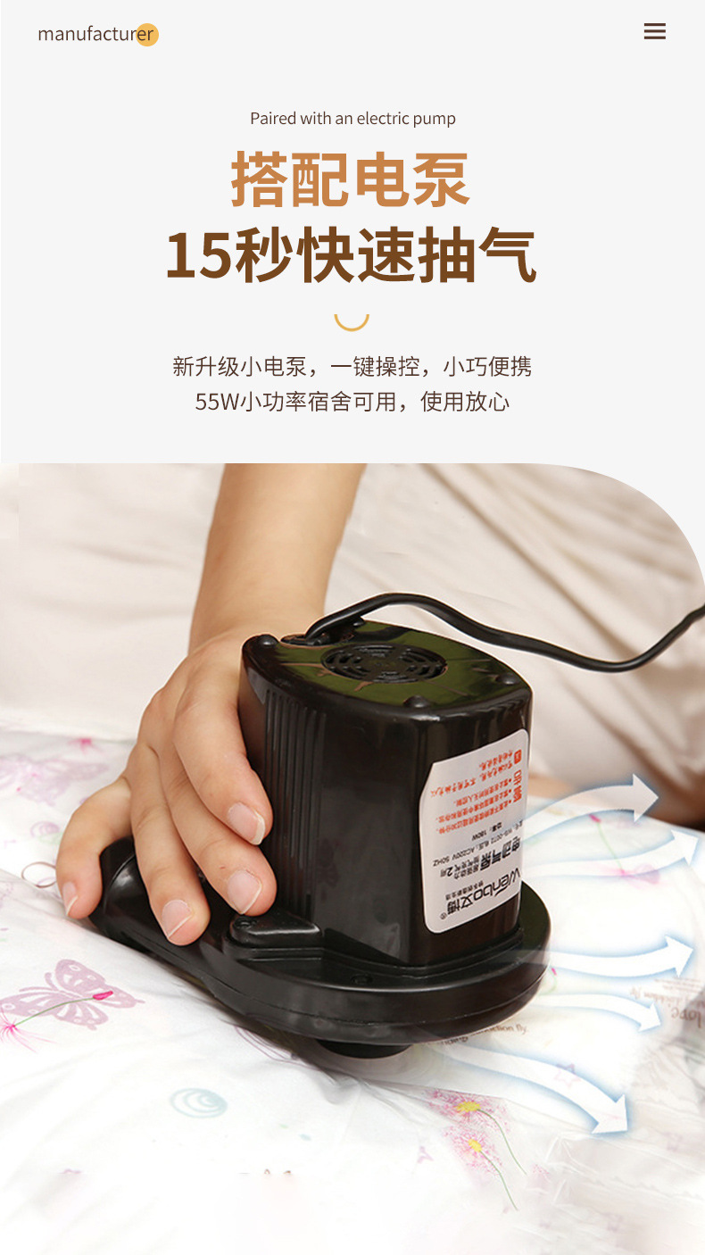 Estricto selección Wenbo 8 Bolsa de compresión de vacío de seda edredón Almacenamiento de ropa única bolsa de embalaje bomba eléctrica al por mayor