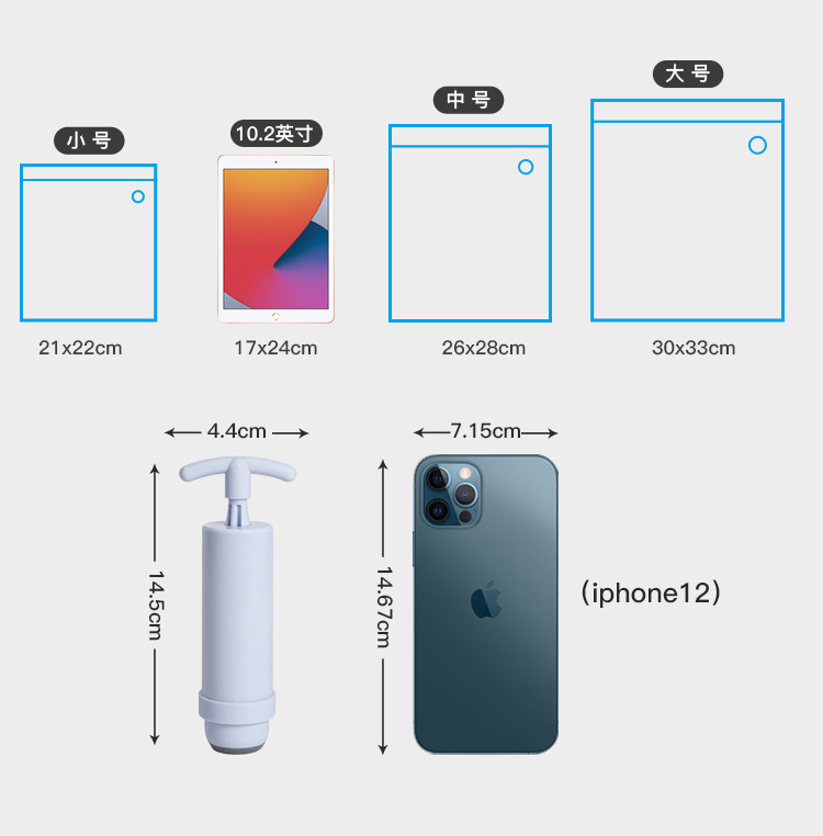 Tamaño pequeño 21*22cm 5 piezas,Tamaño mediano 26*28cm 5 piezas,Tamaño grande 30*33cm 5 unidades,Bolsa de alimentos bomba de mano