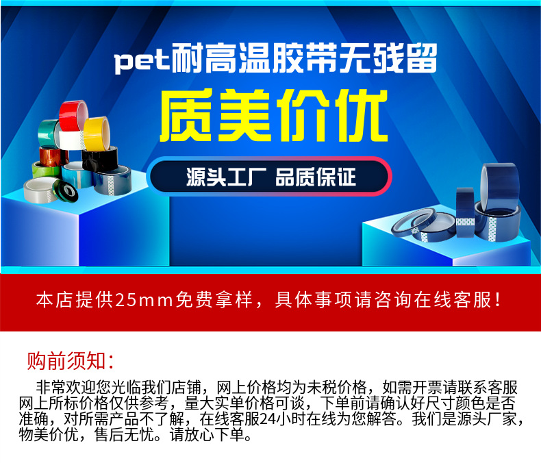 Venta al por mayor de fábrica de cinta azul de alta temperatura para pet placa de circuito de PCB galvanoplastia sin costuras pintura para hornear película protectora de enmascaramiento