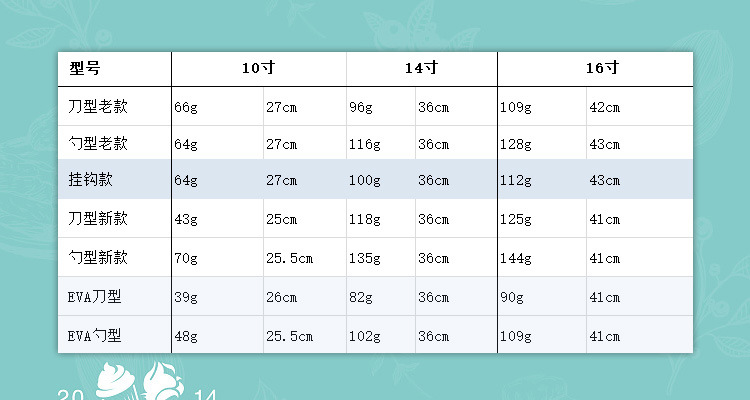 | Especificaciones | Tipo de cuchillo-Viejo,Cuchillo tipo-Nuevo,Tipo de cuchillo-EVA,Tipo de cuchara-Estilo antiguo,Tipo de cuchara-Nuevo,Cuchara-EVA,Estilo de gancho |