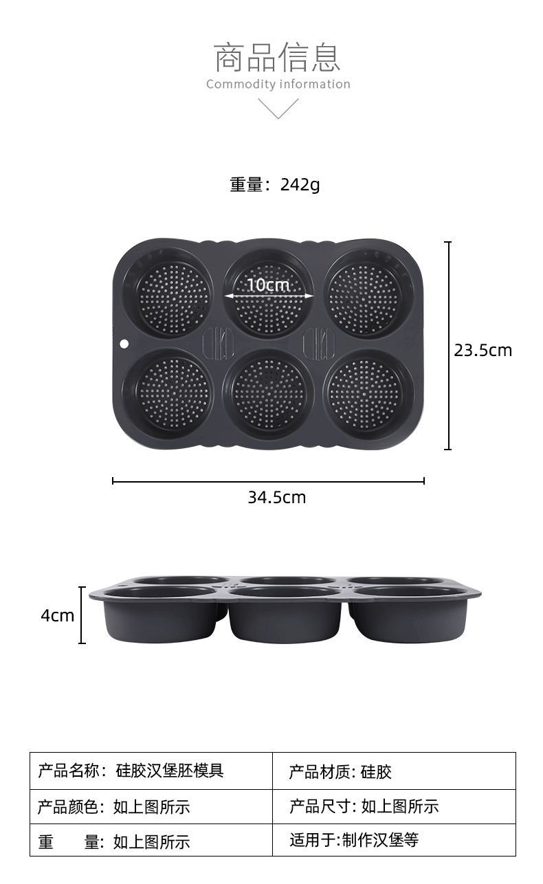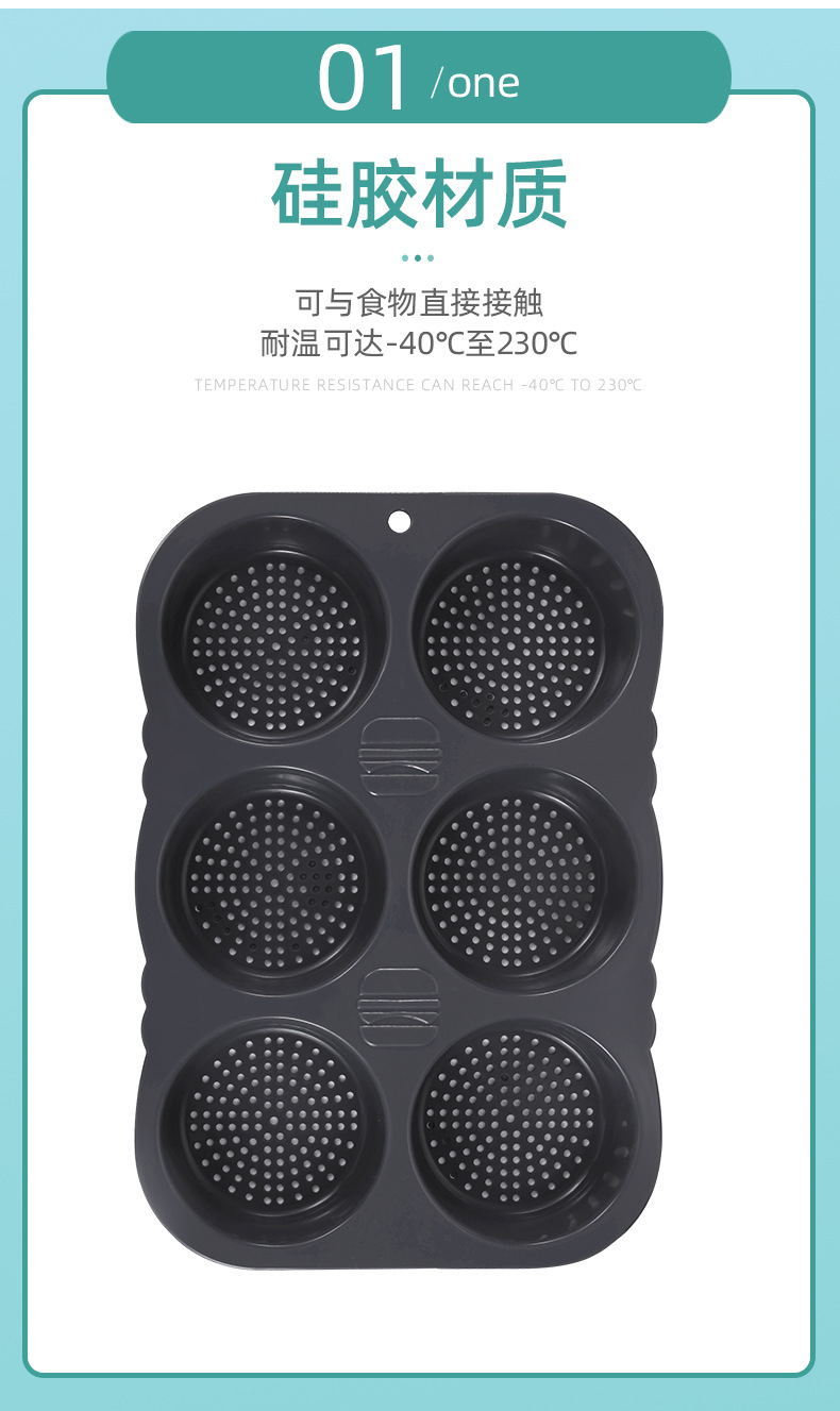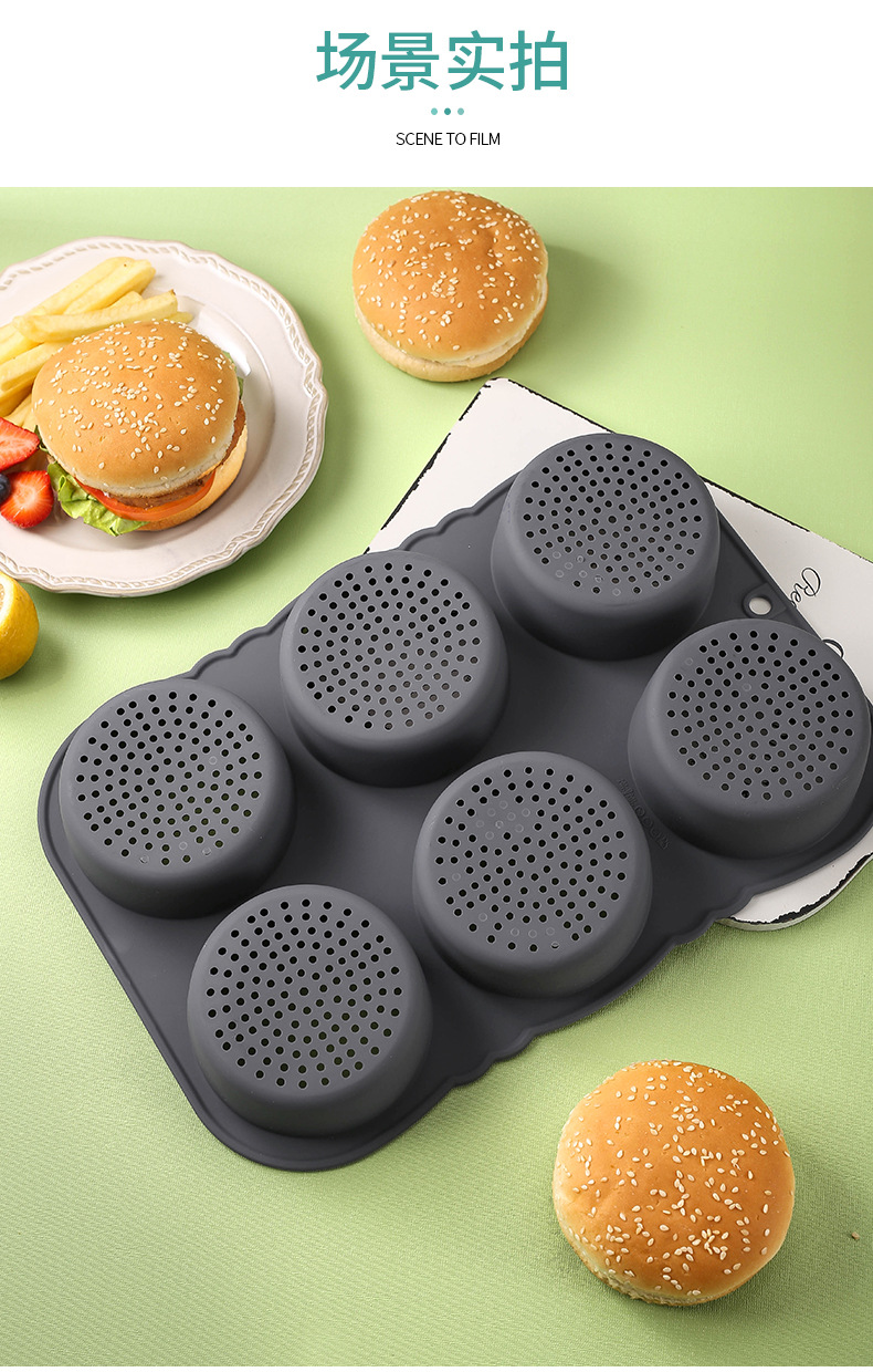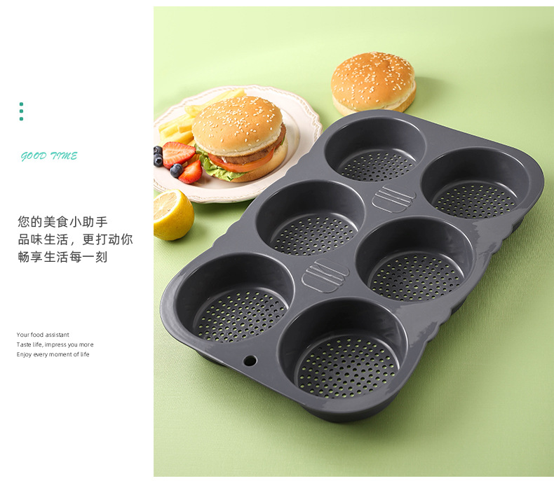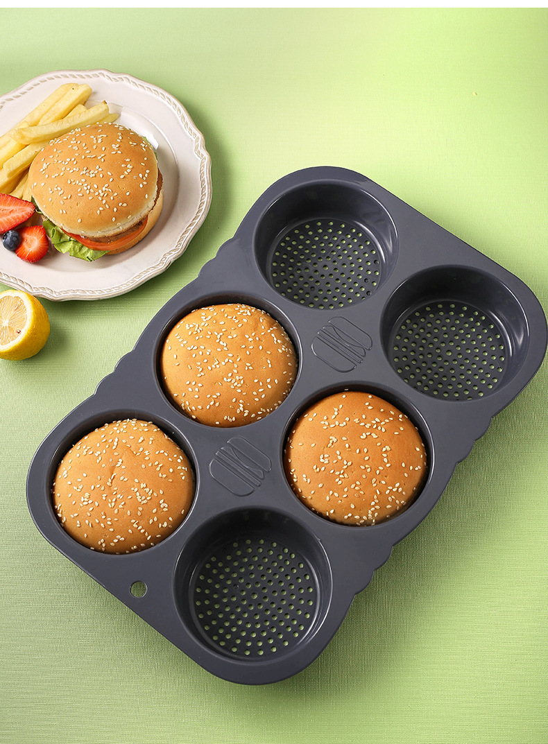 Transfronteriza Amazon alimentos Grado de silicona herramientas para hornear hogar de alta temperatura resistente hamburguesa molde horno bandeja para hornear molde de pan